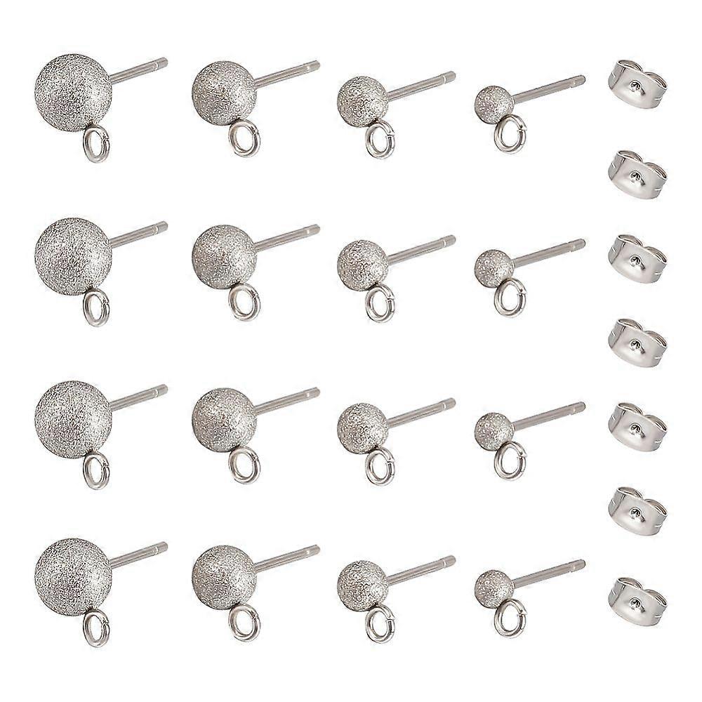40Pcs 4 Size 304 Stainless Steel Stud Earring Findings Textured Ball Stud Earring Post with Ear Nuts and Horizontal Loops Stainless Steel Color 6~10x3