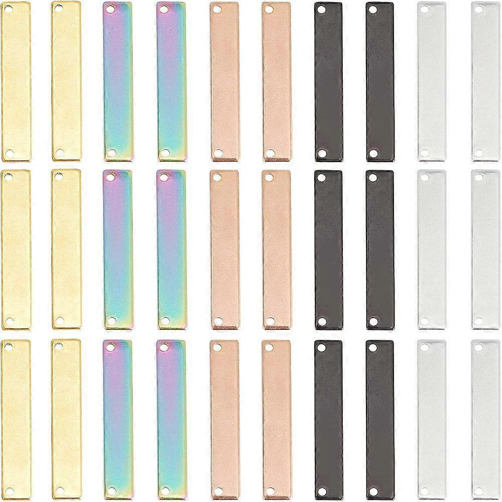 40Pcs 5 Colors Connector Charms 304 Stainless Steel Pendant Stamping Blank Tag Charms Rectangular 2-Holes Connector Ornament Mixed Color 35x6x1mm Hole