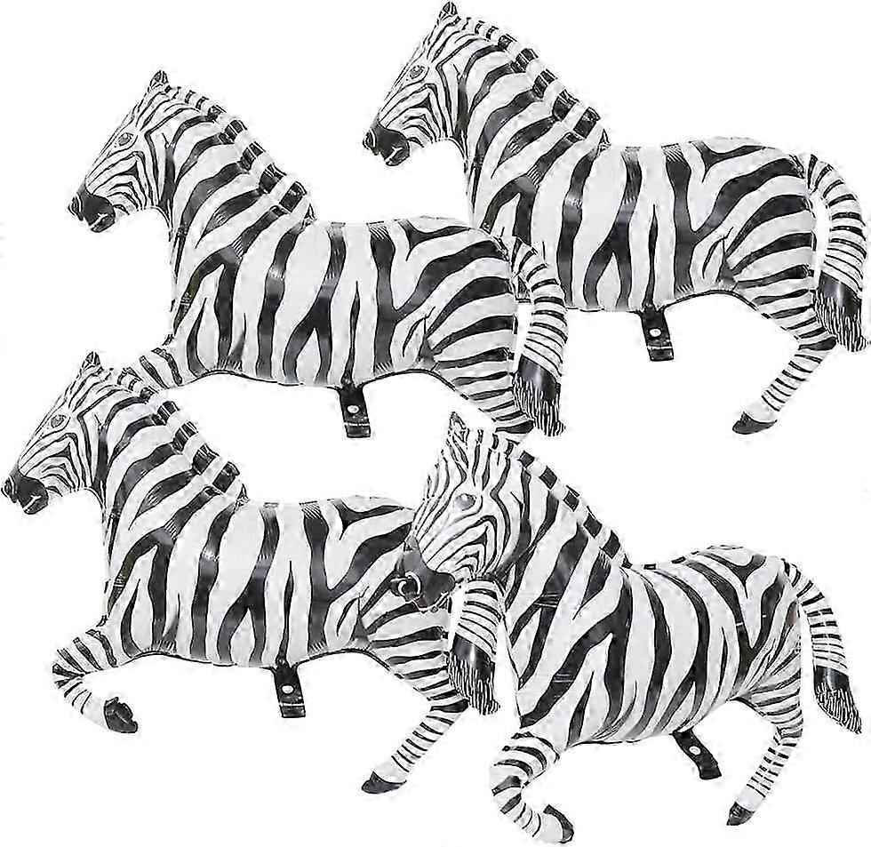 4 PCS ZEBRA BALLOONS, WOODLAND FOREST CRITTER ZEBRA THEMED PARTY SUPPLIES 4 pack zoo jungle safari animal zebra balloons, realistic woodland animal zebra mylar foil balloon, size is around 40'' ( 102 cm ) long * 28'' ( 71 cm) tall, double side printed & more thicken than other. SELF-SEALING VALVE, REUSABLE Our jungle zoo zebra aluminum foil balloons could self seal after inflate, without extra operating. Besides, can be used repeatedly, you can also deflate and store them for future use in animal party decorations. HELIUM SUPPORTED Our wild one zebra balloons can be inflated with air or helium, if you want them float, please fill with helium. RIBBON PACKAGE Package with 1 roll of ribbon (32.8 FT, 10 meter), for hang or for decoration, cut ribbon size with scissor, tying ribbon to the top or bottom of each zebra balloons. You can paste our woodland zebra helium balloons on the wall or hang or float them wherever you want. JUNGLE ZOO ANIMAL THEMED BIRTHDAY PARTY SUPPLIES Great zebra helium balloons party supplies, can be decorated indoors or outdoors, ideal for animal themed party, tropical summer party, birthday parties, bachelorette parties, graduation ceremonies, carnival parties, class reunions, Christmas decorations, baby showers and other festive party events. It can also be used as a holiday decoration to decorate your home to make the family atmosphere happier. It can also be combined with other balloons to form creative decorations. LIFETIME WARRANTY, BUY WITH CONFIDENCE We stand behind all of our products. If you're not 100% COMPLETELY SATISFIED, just send us an email, we promise to make it right! Your satisfaction is our top priority. TIPS Do not over-inflate to prevent pop, 80%-90% enough, avoid heat source, pointed object and excessive friction.