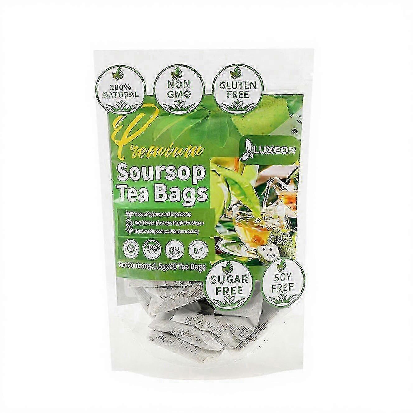 40 Premium Soursop Graviola Leaf Tea Bags, and Pure from Soursop Leaves, Handmade, Made With Natural Materials-Corn Fiber Tea Bag NATURAL AND PREMIUM SOURSOP LEAF TEA BAGS: Grown naturally in our large farm in the countryside, handmade by local. Never been treated/ sprayed with any chemicals, free from pollution. Non GMO - Pure Soursop leaf Tea BagsHANDMADE TO KEEP REAL FLAVOR: Freshly harvest the best soursop graviola leaves in the decent time, dry them carefully with controlled temperature, then grind them to be great size for tea bags. A truly great way to keep stunning color, offers a soothing herbal infusion with a pleasant, earthy flavor that supports a calming tea-drinking experience.NATURAL NO OTHER INGREDIENTS ADDED: Sugar Free, Caffein free, Vegan, Non-GMO, Gluten Free, Heavy metal and radiation free. No artificial flavors and colors addedMADE WITH NATURAL MATERIALS-CORN FIBER TEA BAG: It made from it has silky luster and great touch feeling. It has good heat resistance and is resistant to ultraviolet ray, of good edibility, without any negative effect to the human bodyRELAXING AND SOOTHING: Experience a calming and stress-relieving effect with each sip of Soursop Leaf Tea. This naturally caffeine-free herbal delivers a smooth, earthy flavor with subtle grassy and slightly sweet undertones, which can help promote relaxation and a sense of tranquility. Embrace the gentle moments of self-care and unwind with this delightful brew. Notice: 1.Actual color may be slightly different from the image due to different light effect 2.Please allow 1-3cm deviation due to manual measurement