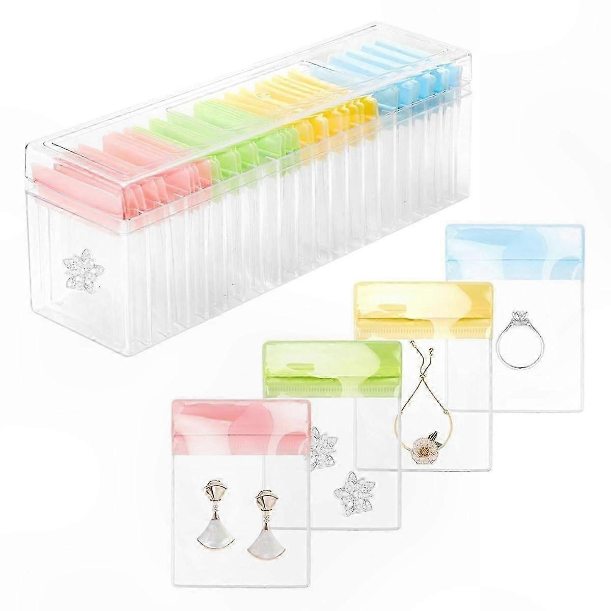 Clear Jewelry Box with 40 Anti-Tarnish Bags, Portable Travel Organizer Case for Accessories Storage