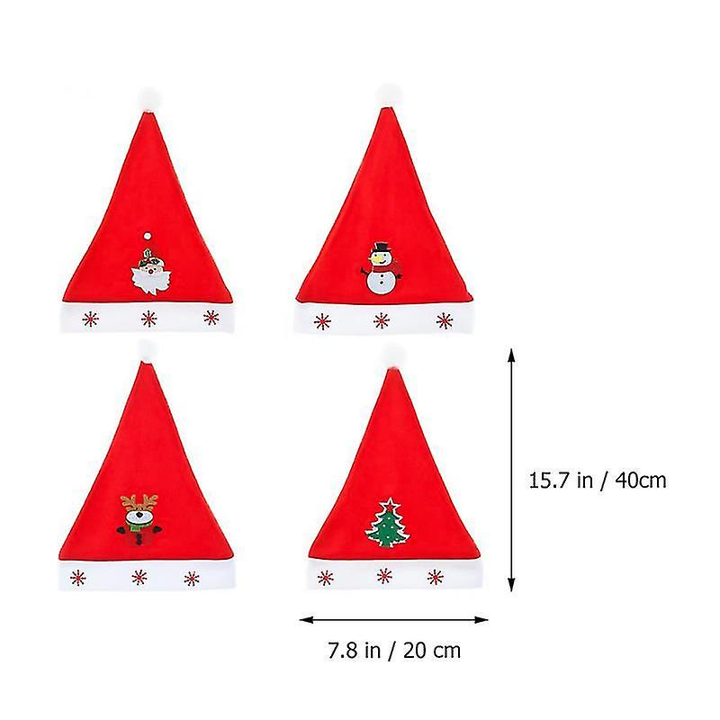 40*20Cm Red Party Hats 4pcs Decorative Cloth Santa Hat Adult Christmas Hat Set Festival Decor (red)