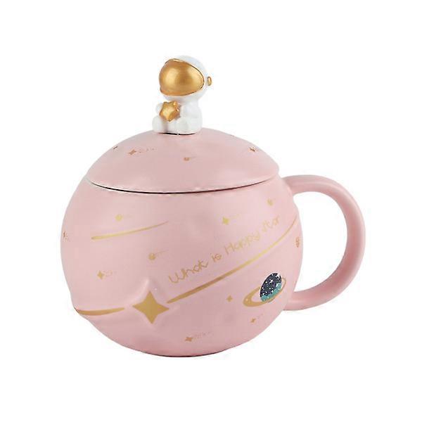 400ml cute astronaut mug ergonomic handle ceramic mug with lid spoon for coffee tea milk pink