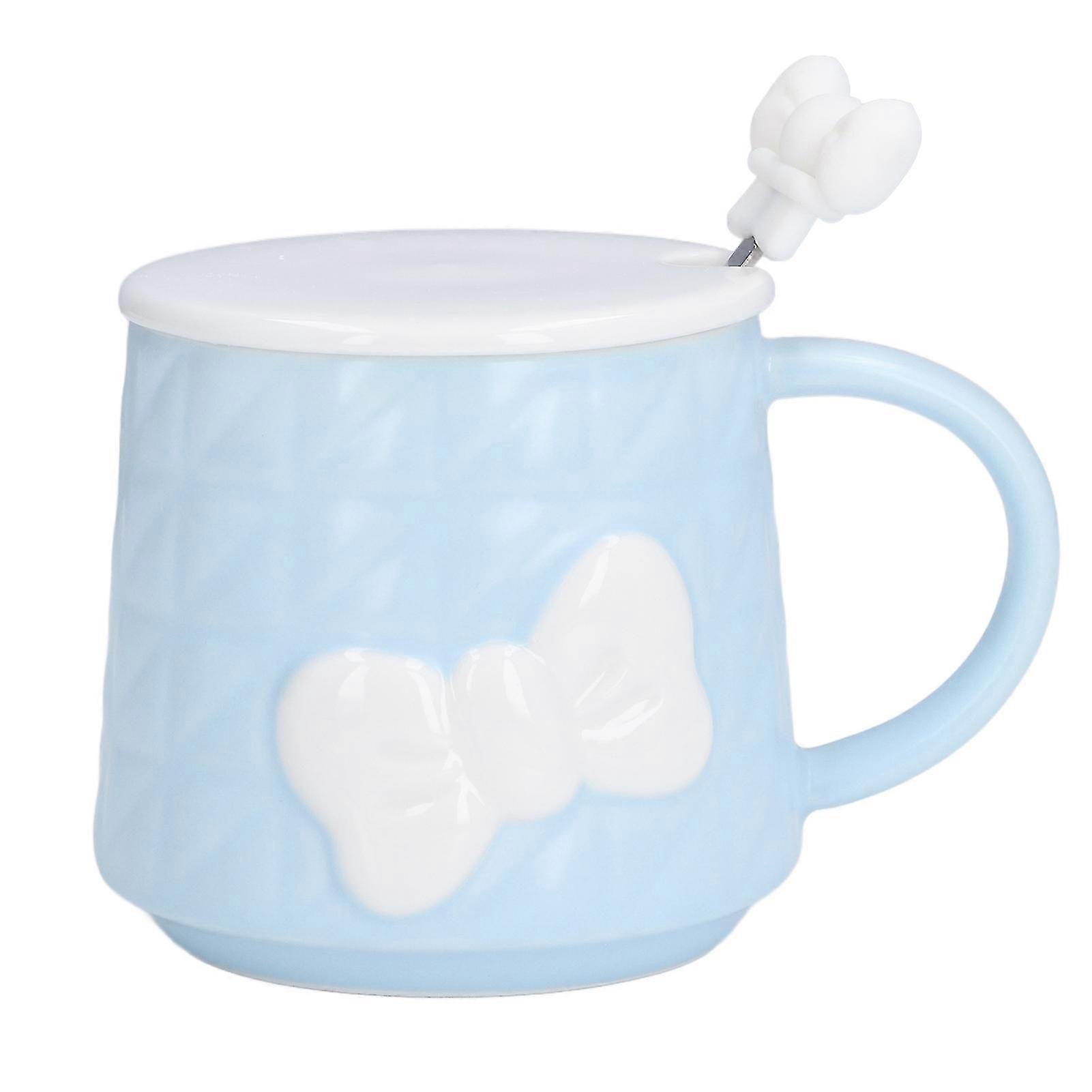 400ml Cute Bowknot Ceramic Mug with Lid & Spoon, Holiday Gift