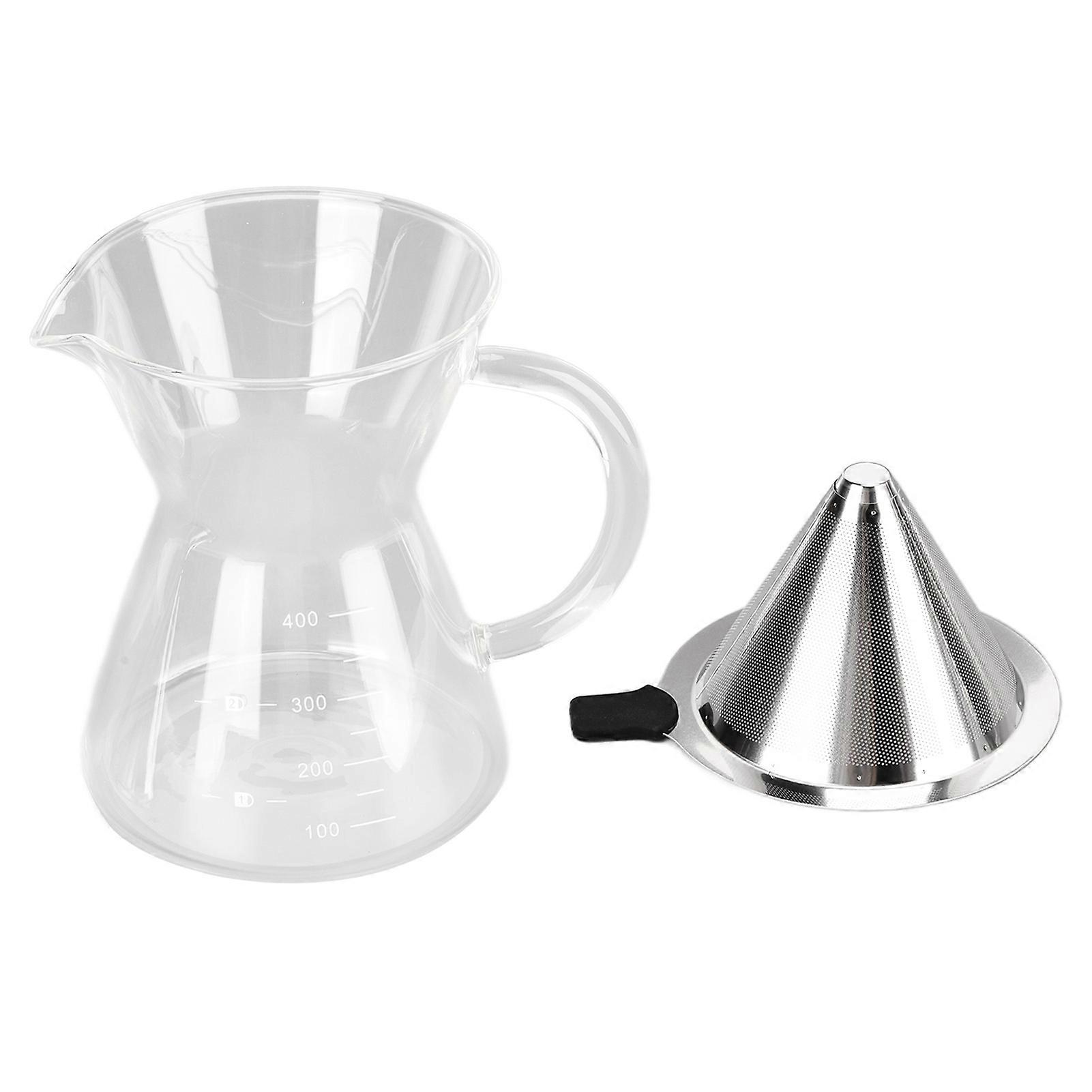 400ml Glass Coffee Pot Kettle Heat Resistant Pour Over Coffee Maker with Stainless Steel Filter for Home KitchenFlat Base