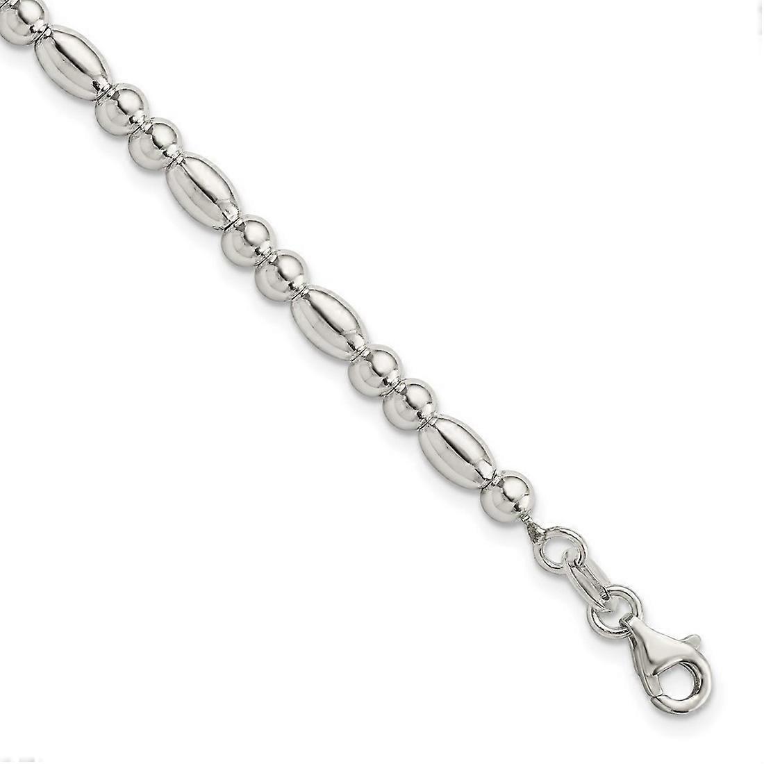 4.07mm 925 Sterling Silver Round and Oval Beaded Bracelet 7.5 Inch Link-Bracelet for Women