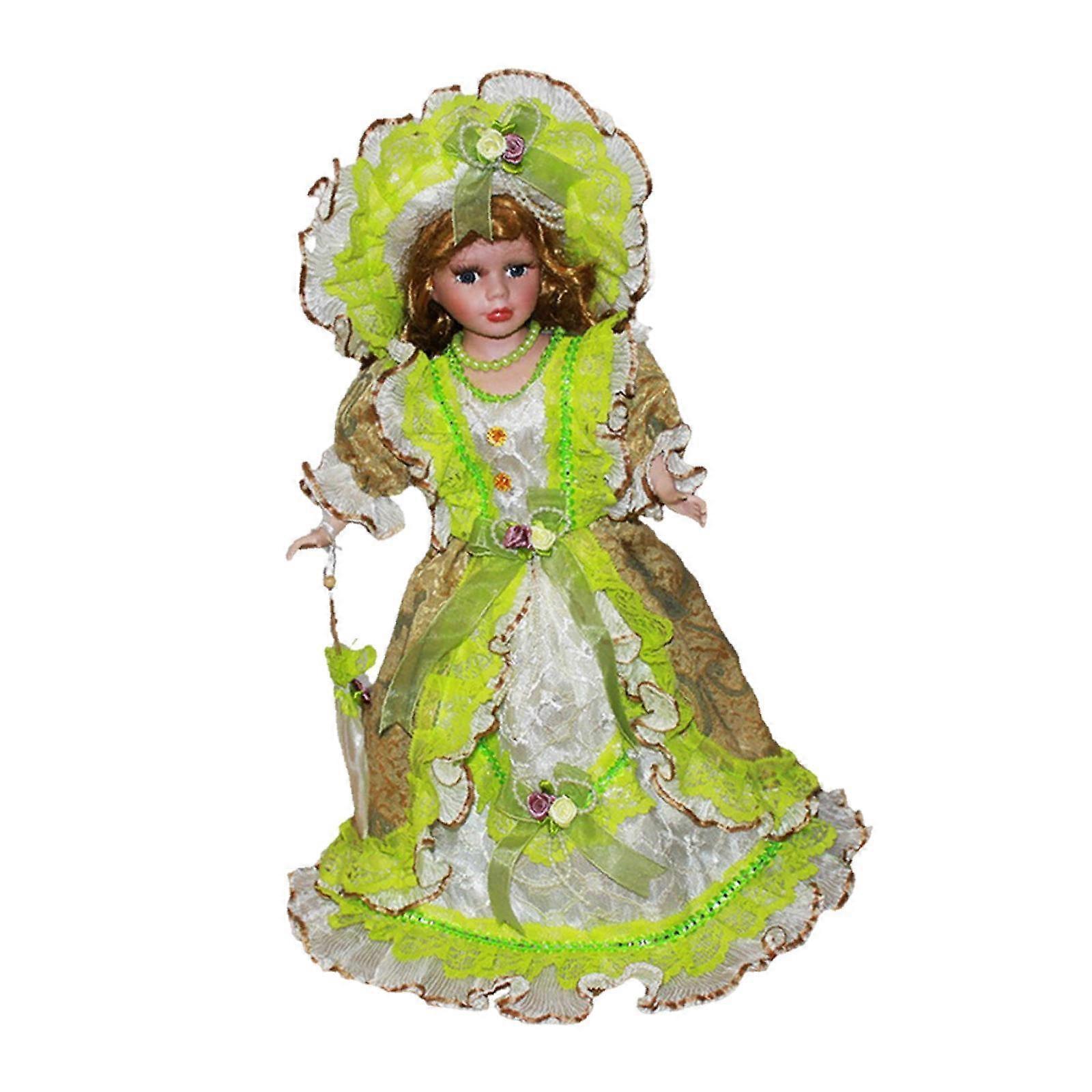 40cm Old Fashioned Handcrafted Porcelain Beautiful Woman for Decoration Gift Green