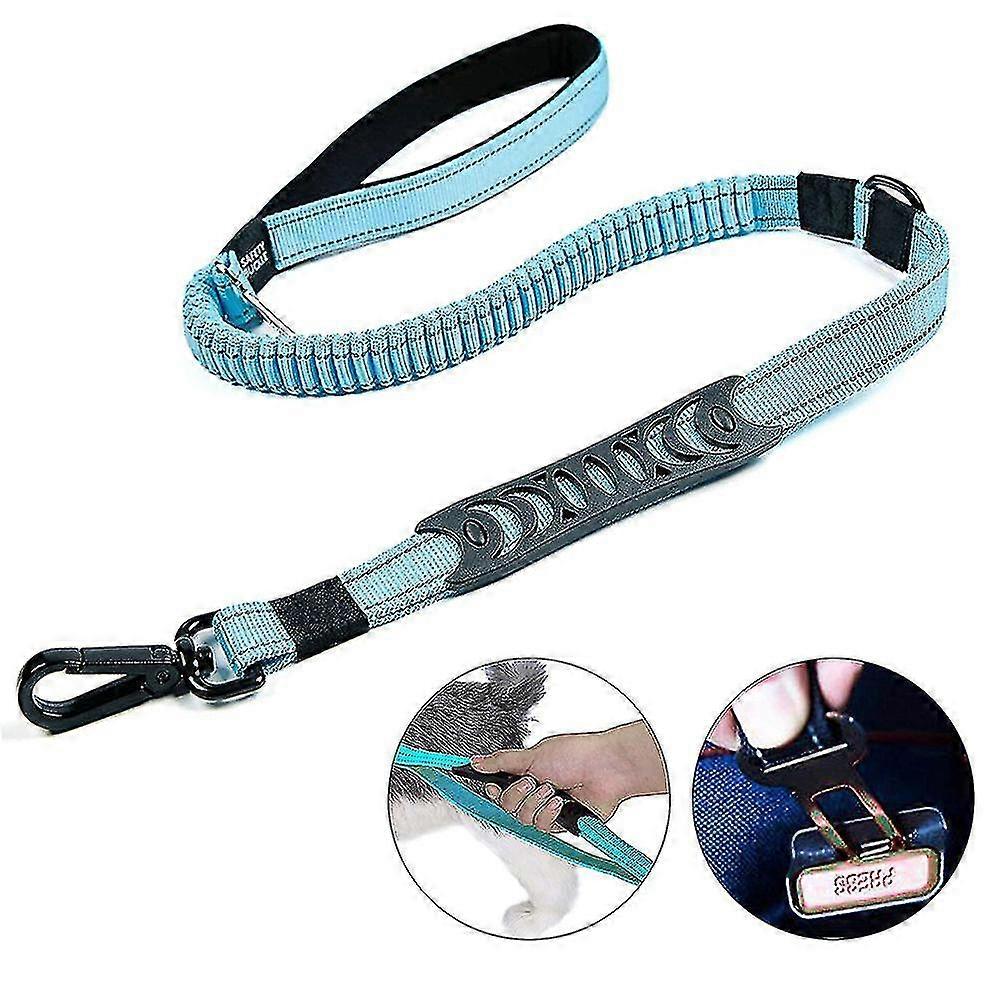 Heavy Duty Dog Leash For Large Dogs Up To 40kg, Reflective Dog Walking Training Shock Absorbing Bungee Leash With Car Seat Belt Buckle, 2 Padded Traff
