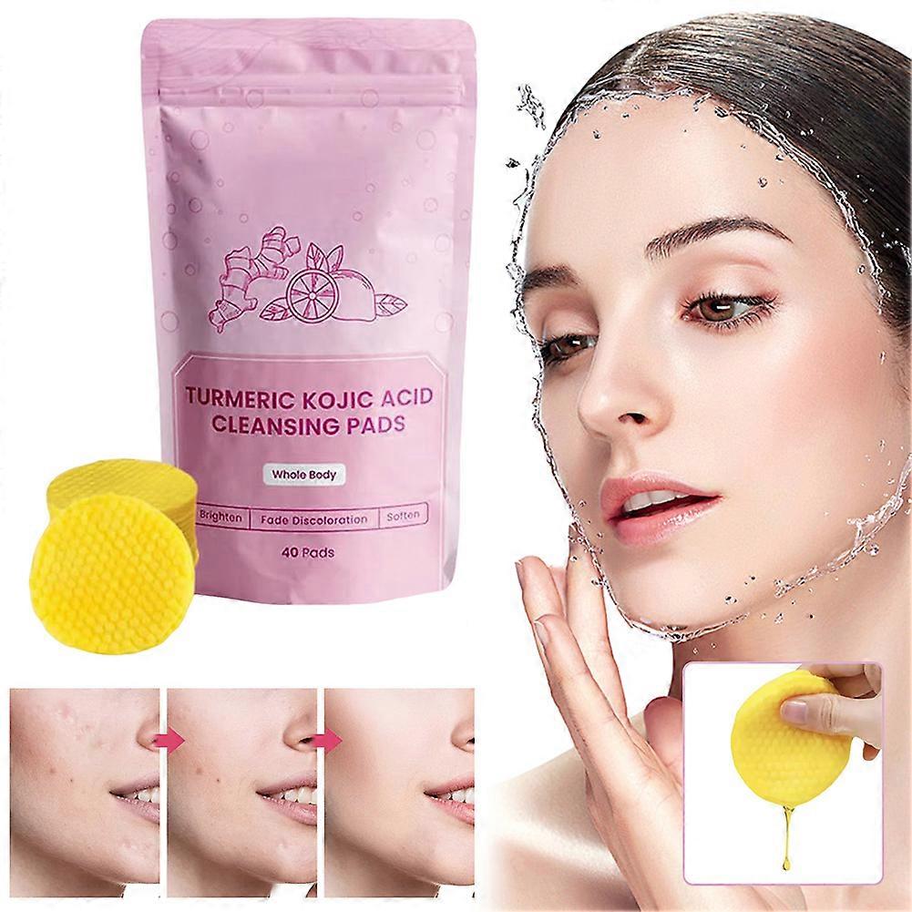 40PCS Turmeric Kojic Acid Exfoliating Cleansing Pads Fades Dark Spots Exfoliates Skin Pads Facial Care Supplies