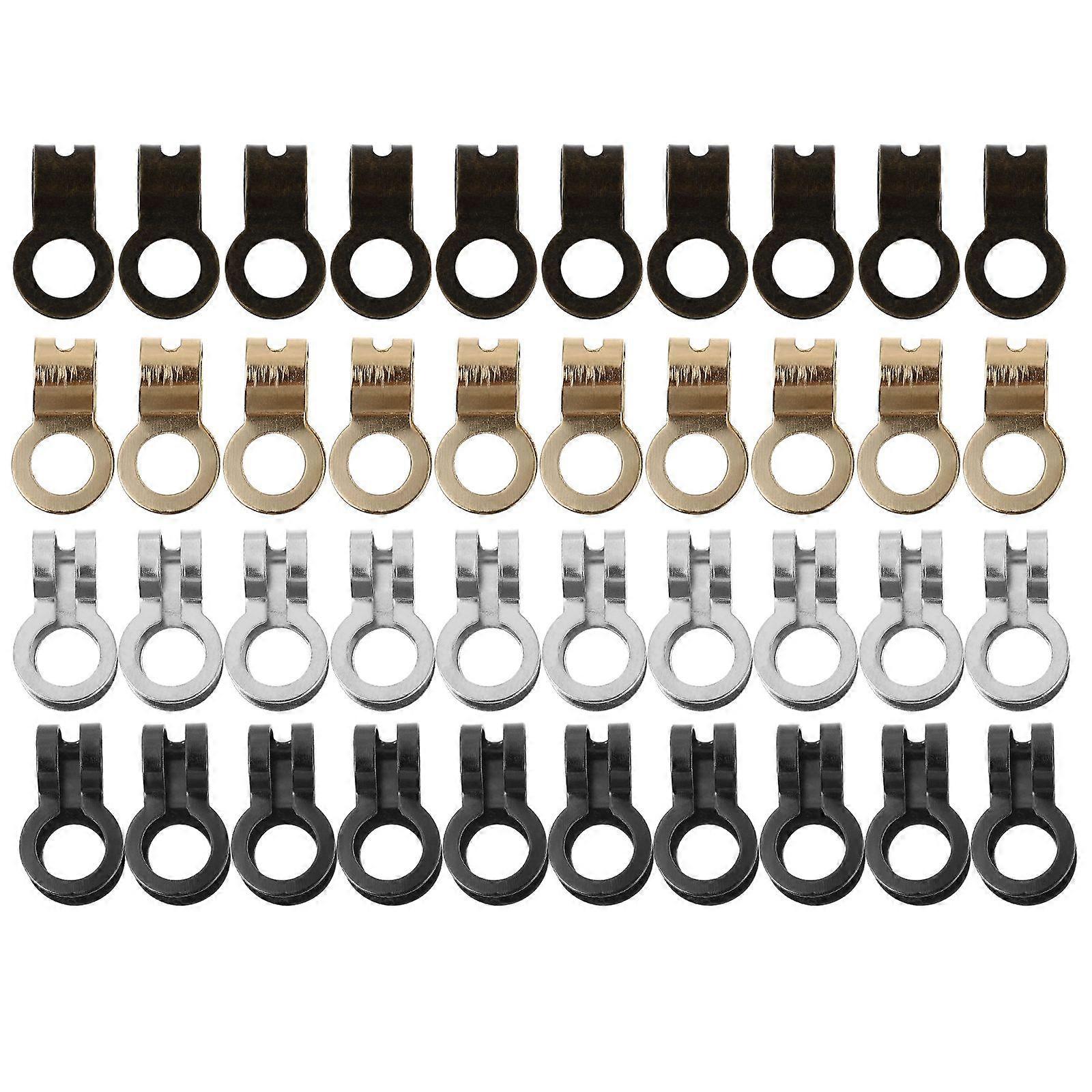 Description This is a set of beaded chain end clamps, which is made of high grade material, safe and durable for your long period using. It is a multifunctional tool for your daily use. Excellent size for suspending small items from delicate handbags and many ornaments. Features -Color:Light gold + black + bronze + silver -Material:Iron -Size:1.70X1.00X0.60cm/ 0.67X0.39X0.24in -It can decorate your bag well and make your bag more fashionable and beautiful. -You can attach your clasp or jump ring to the loop on the end. -Simple but practical product appearance design. -Suitable for makings as lanyard, choker, necklaces, bracelet, and more. -With these clips, you can DIY your own crafts, and provide more convenience to you. Package list: 40 x bag chain clips