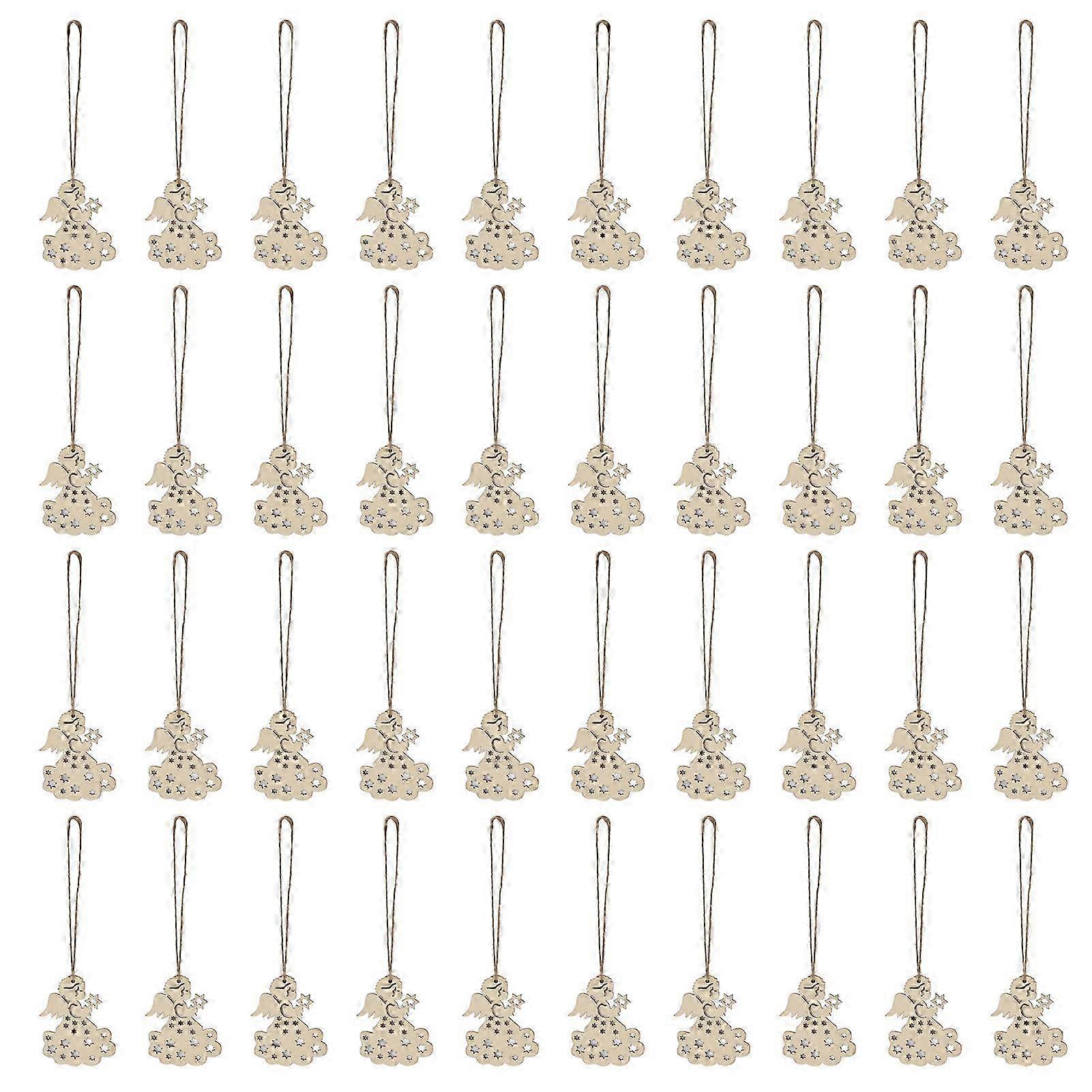 40pcs Wooden Hollow Christmas Ornaments with Lanyards for Tree Decor