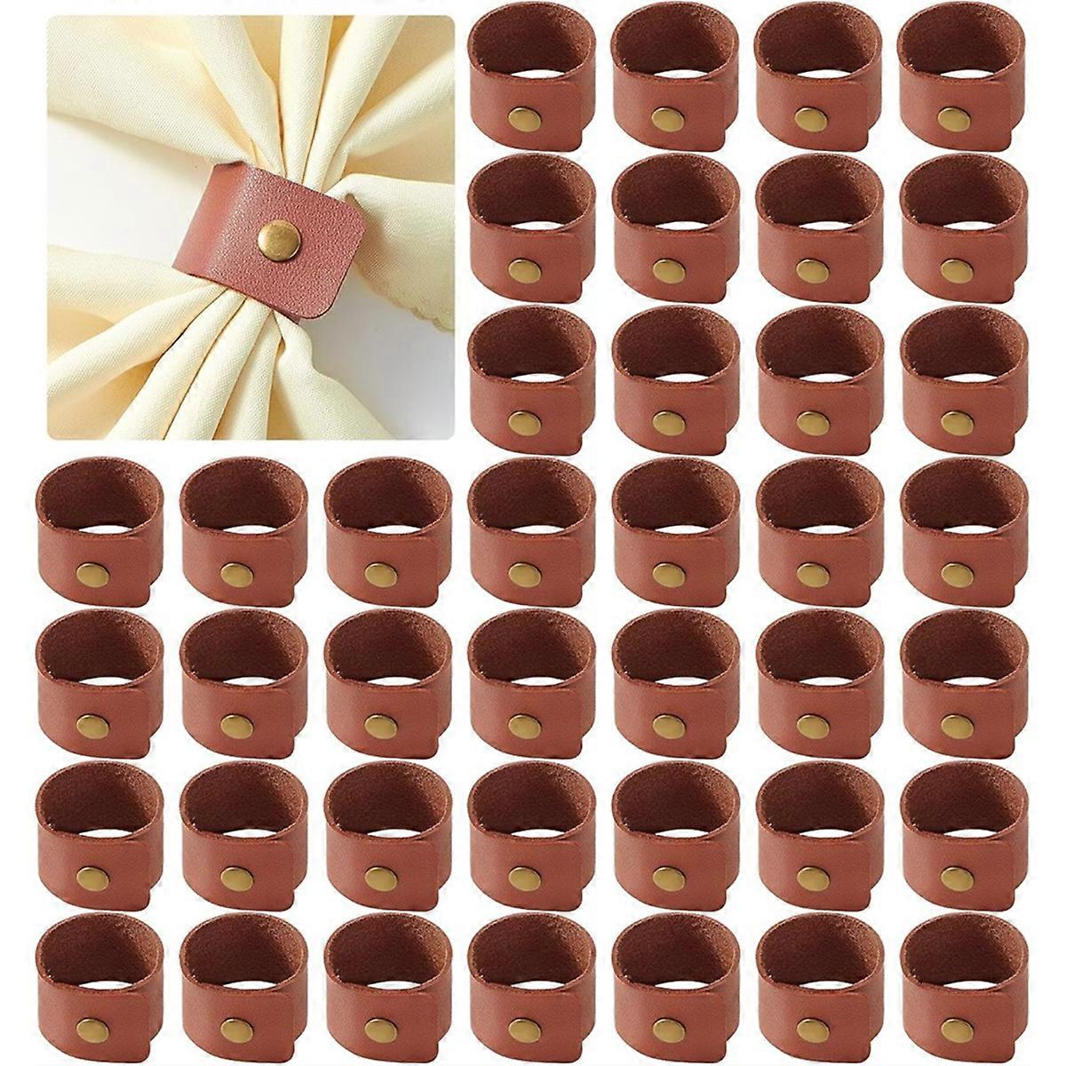 40PCS PU Leather Napkin Rings, Brown Vintage Farmhouse Napkin Holder for Wedding Party Birthday Banq