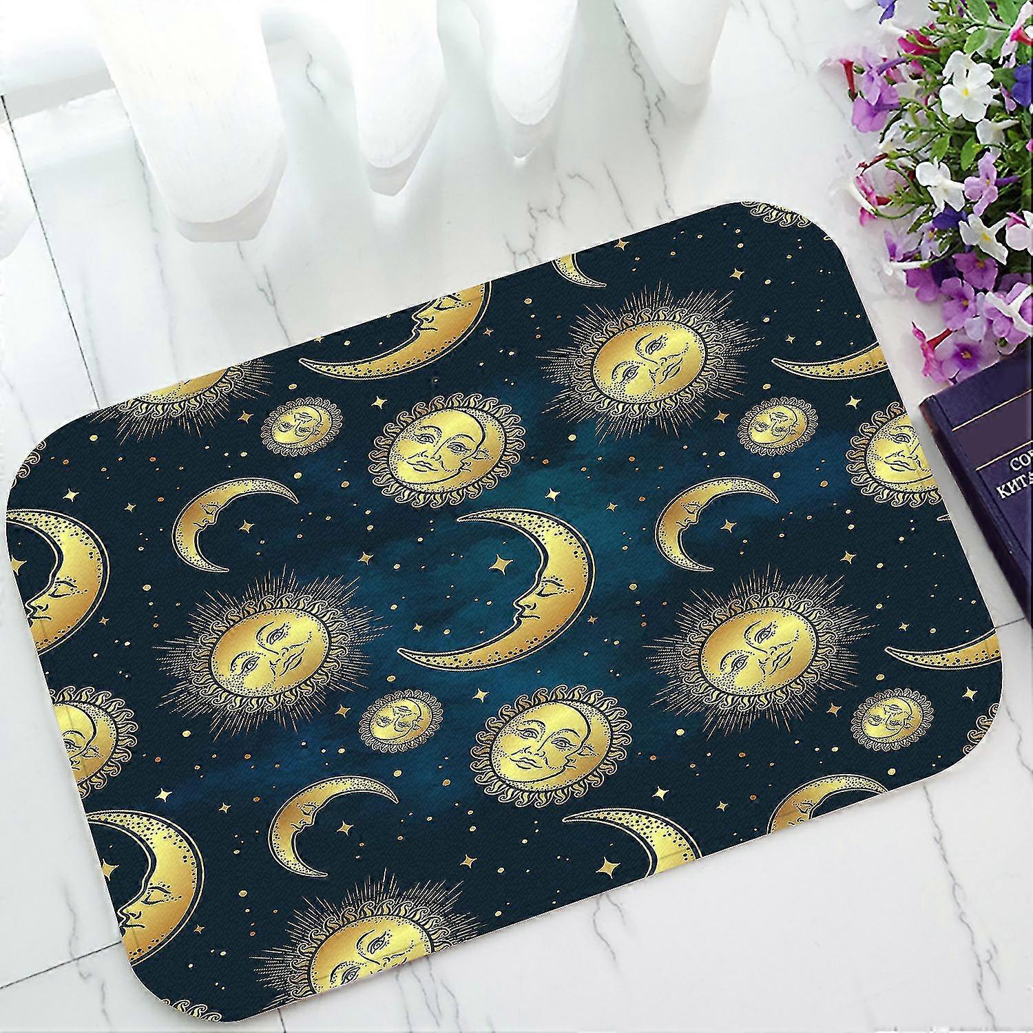 Gold Celestial Bodies Moon Sun Stars Blue Night Sky Doormat Entrance Rug Area Rug Floor Mat Home Decor 40x60 Cm