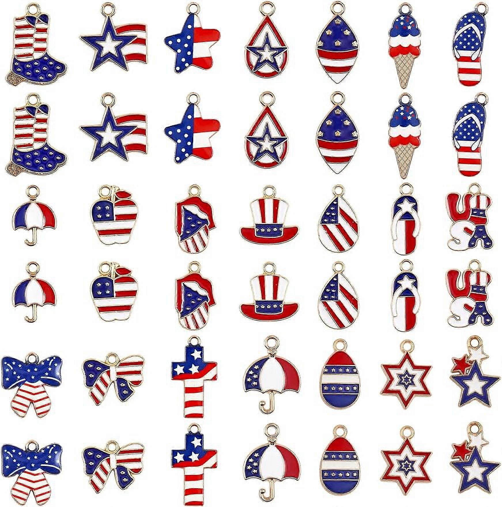 42Pcs 21Styles Independence Day Charms Alloy Enamel Pendants for DIY Crafts Mixed Color