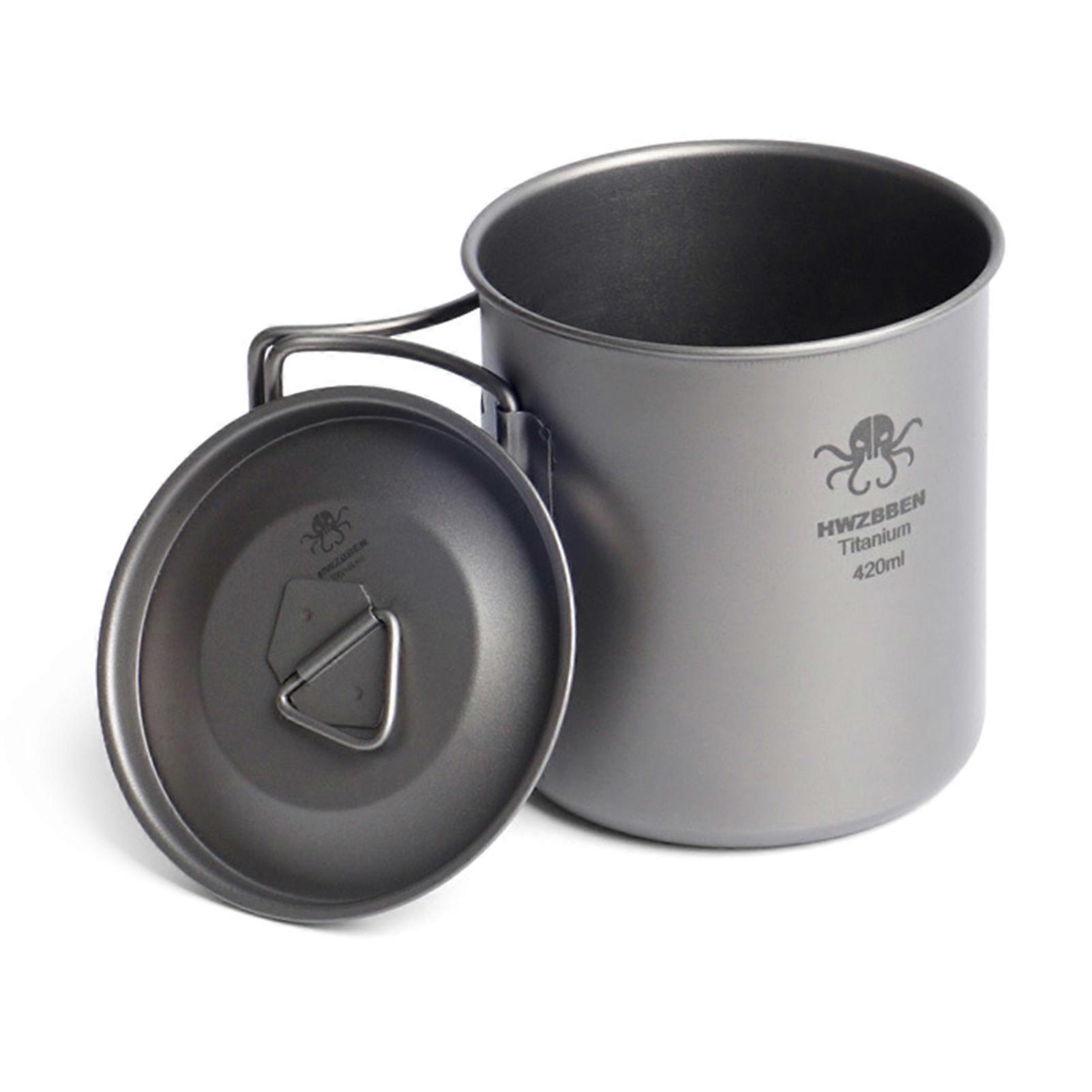 420ml Titanium Cup with Foldable Handles Lightweight Water Cup for Backpacking Camping Fishing