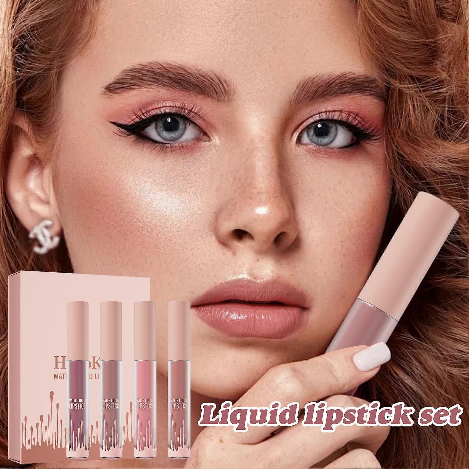 4Pcs Velvet Matte Liquid Lipstick Set, Waterproof Long Lasting Quick-drying Non-Stick Cup Nude Lip Stain Kit, Up to 24H Wear, Lip Gloss Kit