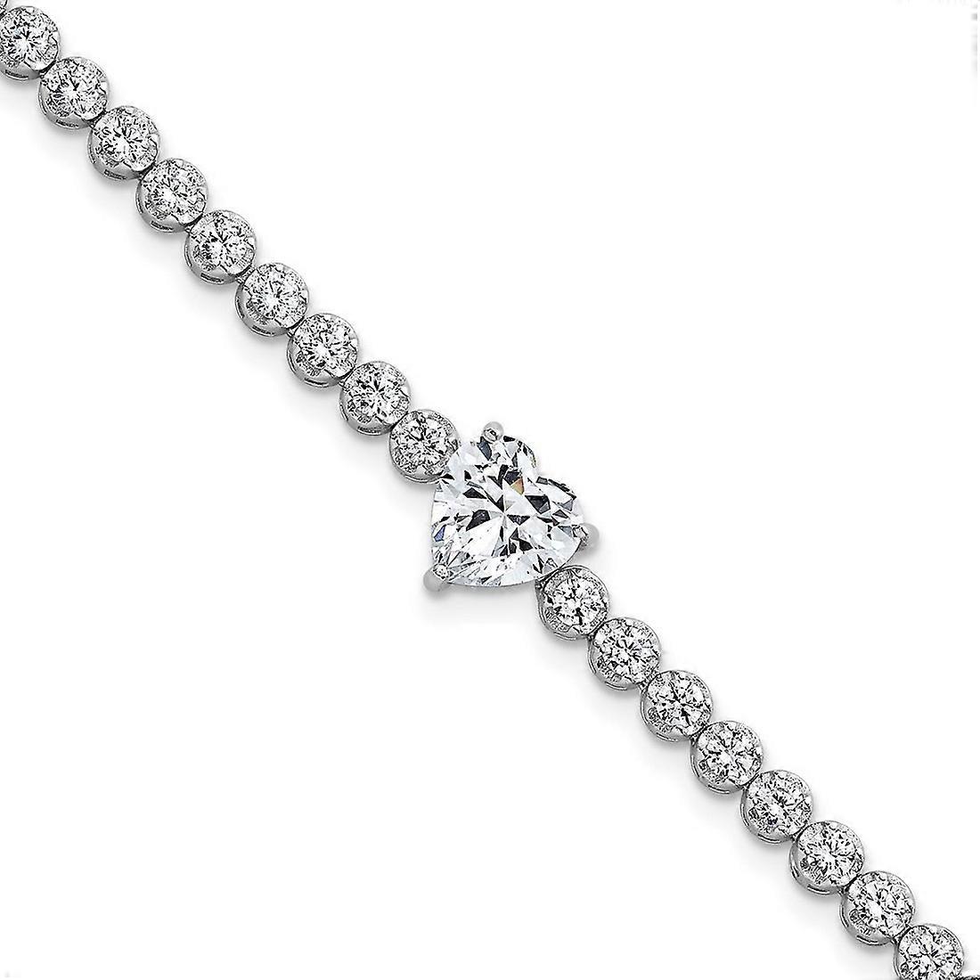 4.2mm Sterling Silver Rhodium-plated Polished Round and Heart Cubic Zirconia Bracelet - 7.25 Inch - 8.9 Grams In Sterling Silver in Plated Metal - - Charm/Element Width: 9.2 mm - Charm/Element Thickness: 5.75 mm - Width of Item: 9.2 mm - Charm/Element Length: 8.75 mm - Length of Item: 7.25 in - Chain Length: 7.25 in - Chain Width: 4.2 mm - Clasp /Connector: Box Catch - Finish: Polished - Feature: Lightweight - - [ Potential Enhancement Methods: cubic zirconia ] - Synthetic. Some are covered with a product that makes the stone more durable. - [ Care and Handling: cubic zirconia ] - Clean with warm soapy water and a soft cloth. -