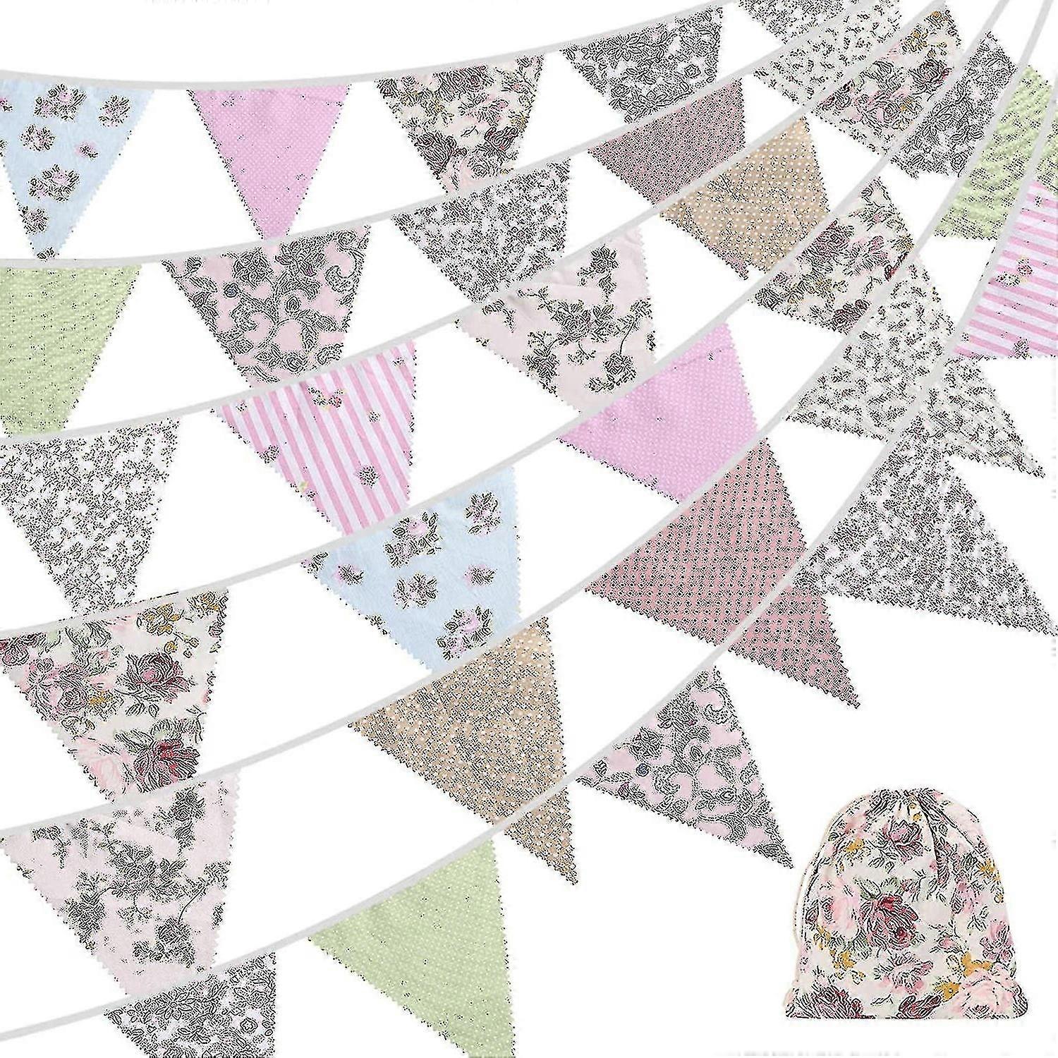 39.9ft Fabric Bunting, 42pcs Outdoor Bunting, Floral Vintage Cotton Pennants for Garden Birthday Party Outdoor Party Decoration Packing: 1*12 meters, 42 pieces banners, Size: 14*18 fabric: cloth