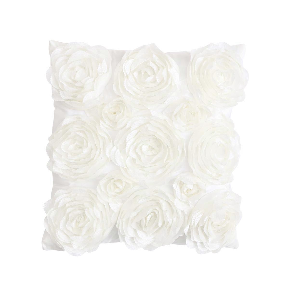 42X42CM 3D Rose Flower Square Throw Pillow Cushion Case Cover Sofa Home Room Car Seat Decor (White)