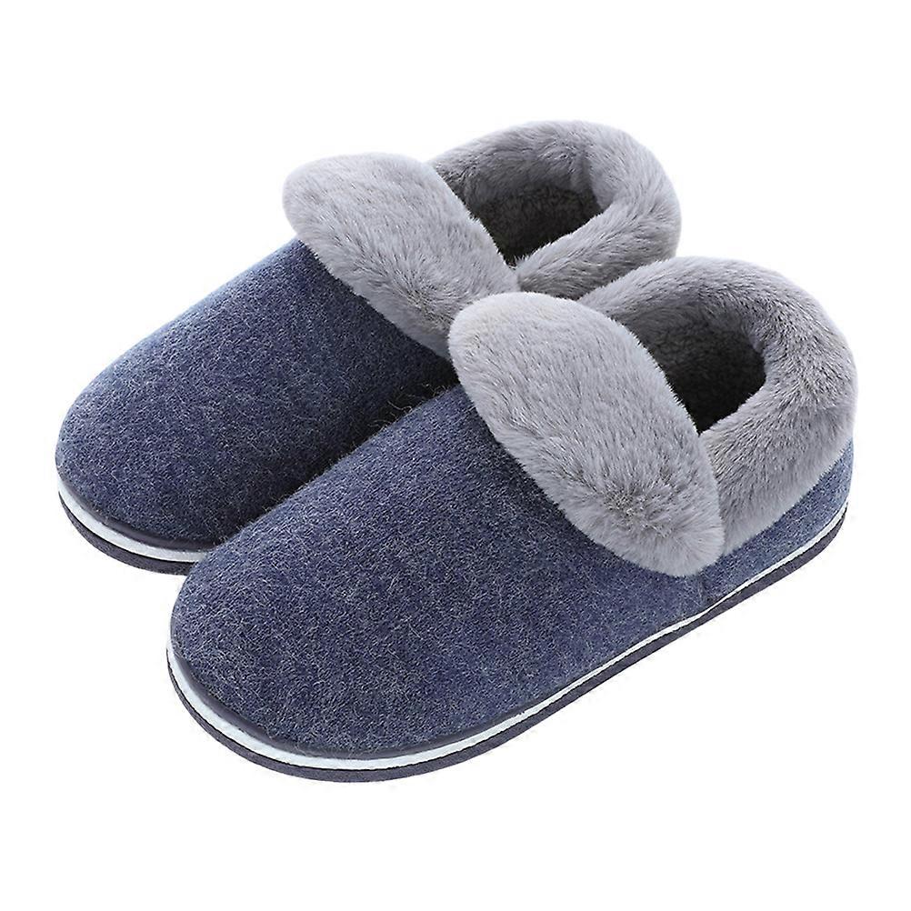 Winter Warm Slippers Cover Heel Slippers Thicken Plush Slippers Skid Resistance Slippers (Navy Blue Size 43-44 for Man)