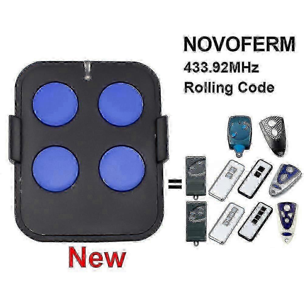 New with bracket Remote Control for NOVOFERM NOVOTRON 433Compatible with:NOVOFERM MCHS43-2NOVOFERM MTR43-2NOVOFERM MNHS433-02NOVOFERM MNHS433-04NOVOFERM NOVOTRON 502 MAX43-2NOVOFERM NOVOTRON 504 MAX43-4NOVOFERM NOVOTRON 512 MIX 43-2NOVOFERM MINI-NOVOTRON 522NOVOFERM MINI-NOVOTRON 524NOVOFERM MINI-NOVOTRON 522 DesignNOVOFERM MINI-NOVOTRON 524 DesignAccess to receiver required. Please make sure you got access to your receiver/opener before purchase.SpecificationsItem condition - NewThird party remote control. Not made by NOVOFERMDecoder IC - Rolling Code.Frequency - 433.92MHz.Operating voltage - CR2032 (Free battery included)Transmit distance - 25-50m in open space. Open space means no any interference. No walls, no doors, no trees or any other obstructions. Interference like garage door or brick wall can reduce remote control range significantly.Programming instruction1. Open the casing of your receiver. It is located next to your motor.2. On the receiver circuit board, press the programming button and let it go (ENR, MEMO, PROG, REC according to the model) The LED light on the receiver illuminates or blinks.3. Press a button on your new remote control for 1 second.4. Let the button go. The LED light on the receiver turns off immediately or in the following 10 seconds according to the model.Your new remote control is programmed.What is Included1 x Remote control1 x Battery1 x Keychain1 x English instruction manual