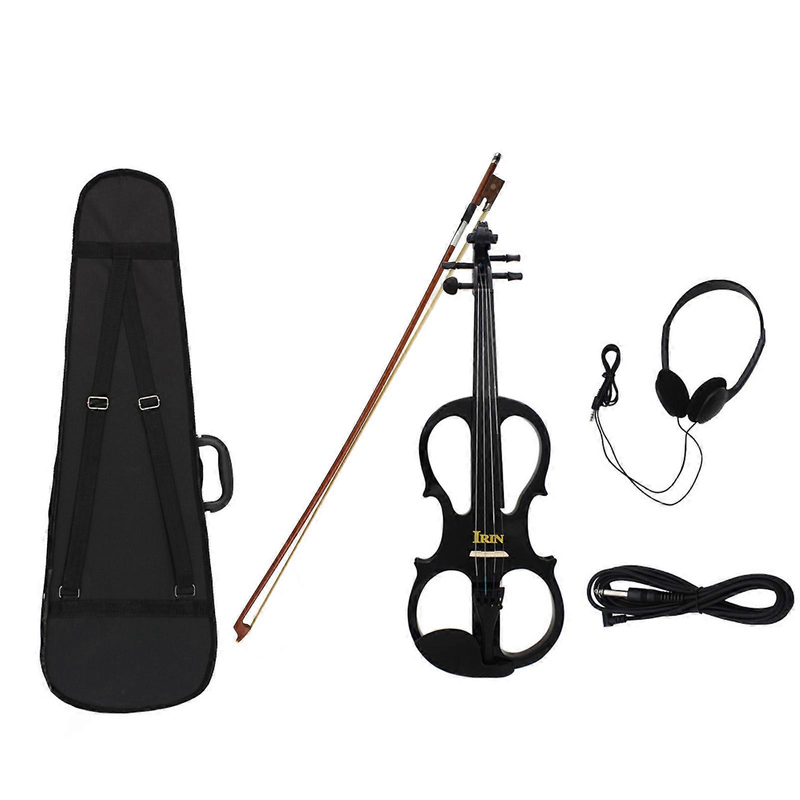 4/4 Wood Maple Electric Violin Fiddle Stringed Instrument with Ebony Fittings Cable Headphone Case for Music Lovers Beginners