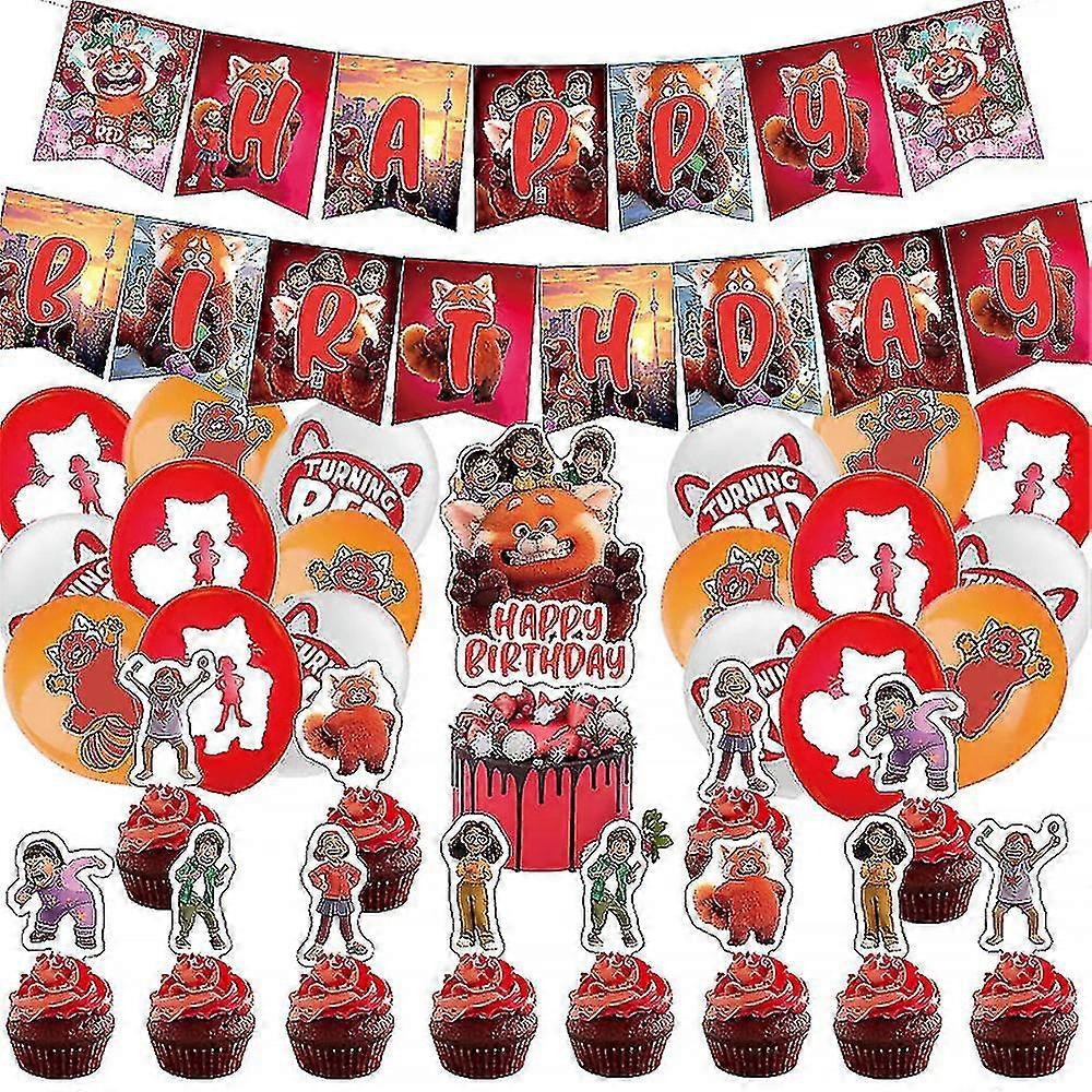 44pcs Turning Red Party Decor Balloon Banner Cake Topper Sets
