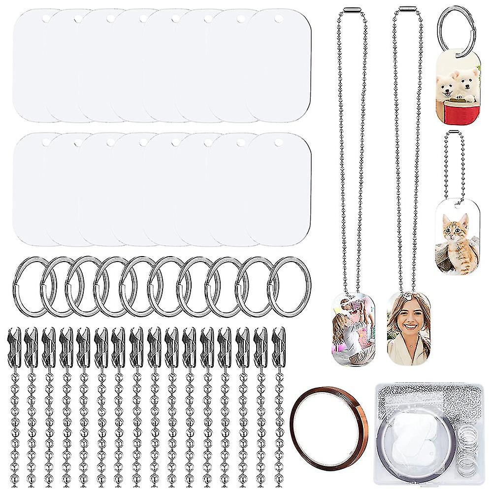 44pcs Sublimation Stamping Blank Aluminum Dog Tags, With Chain Necklace Chain Key Rings Heat Tape F