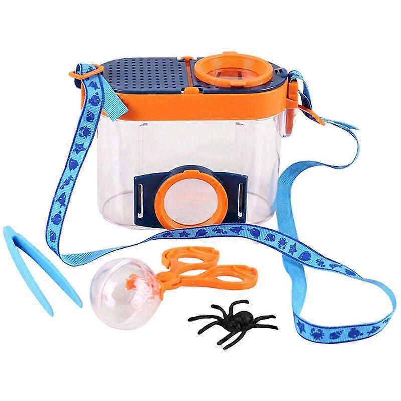 Very interesting insect container with a magnifying viewer for catching and observing insects and bugs like moths, spiders, grasshoppers, etc. Features: Bug Catcher and Viewer: Comes with bug container, tweezers, bug transfer tool, the set is perfect for kids' nature explorations of bug/insect inspection . Double magnifying glass on the top and side: both magnifying glasses have a diameter of 1.5 inches (37 mm), the top one with 2.6X magnification and the side one with a 4.5X magnification, you can clearly observe the bug through these two magnifying glass. Portable design: lightweight but durable, with detachable hanging shoulder strap for convenient carrying. Adjustable focal length: the focal length of the Two magnifying lenses can be adjusted to meet the demand of different insect observation. Besides, the side magnifying glass can be moved up and down if necessary. Wonderfully Nature Exploration Kit: Perfect for camping trips and outdoor or indoor investigations.