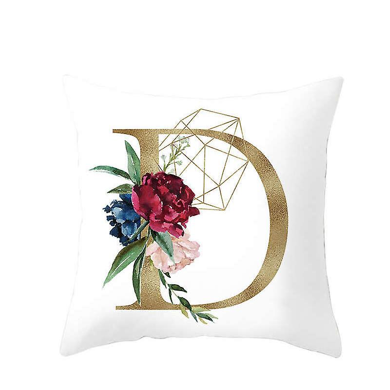 45 X 45Cm Letter Cushion Cover Gold D With Flower Cushions & Decorative Pillows