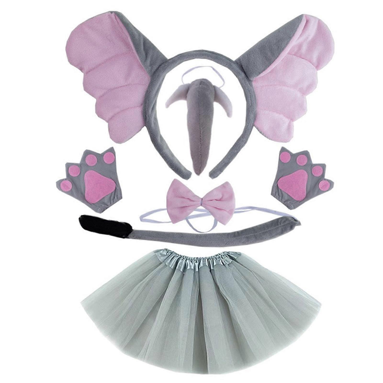 4/5/6 Elephant Costume Accessories Set-Elephant Ear Headbands,Bows,Snout Glove Tail Accessories Kit Kid Elephant Costume