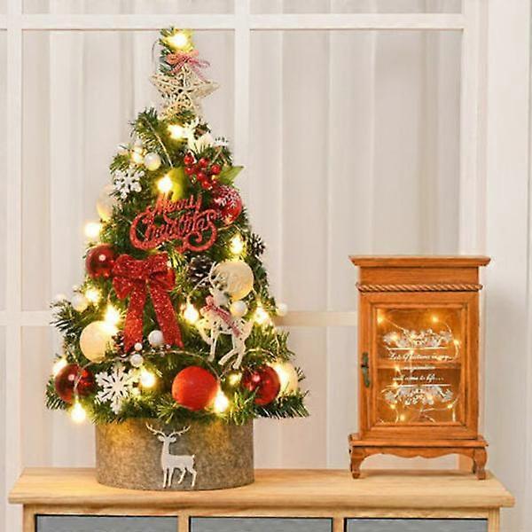 45 cm small artificial Christmas tree, small Christmas tree with LED lights, for holidays, Christmas parties, red and pine
