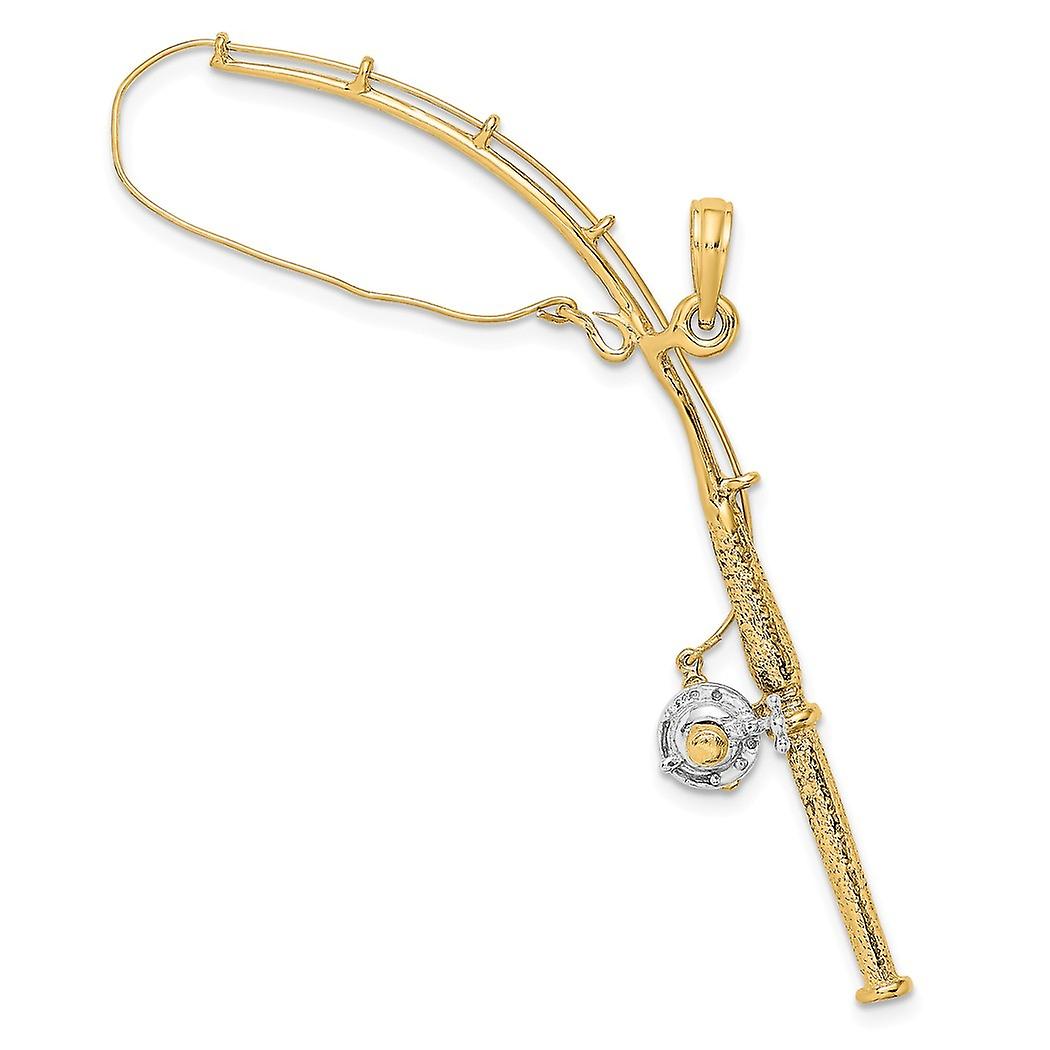 45mm 14k Two tone Gold 3 d Animal Sealife Fishing Pole With White Reel Moveable Charm Pendant Necklace for Women