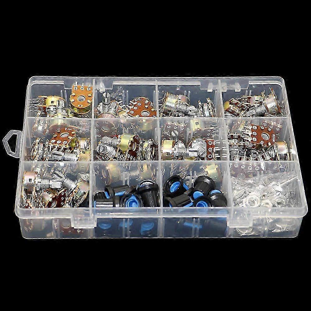 45pcs Wh148 Dual Gang Stereo 6pin Potentiometer Kit 1k 5k 10k 20k 50k 100k 250k 500k 1m With Knobs Single Shaft Nuts+box