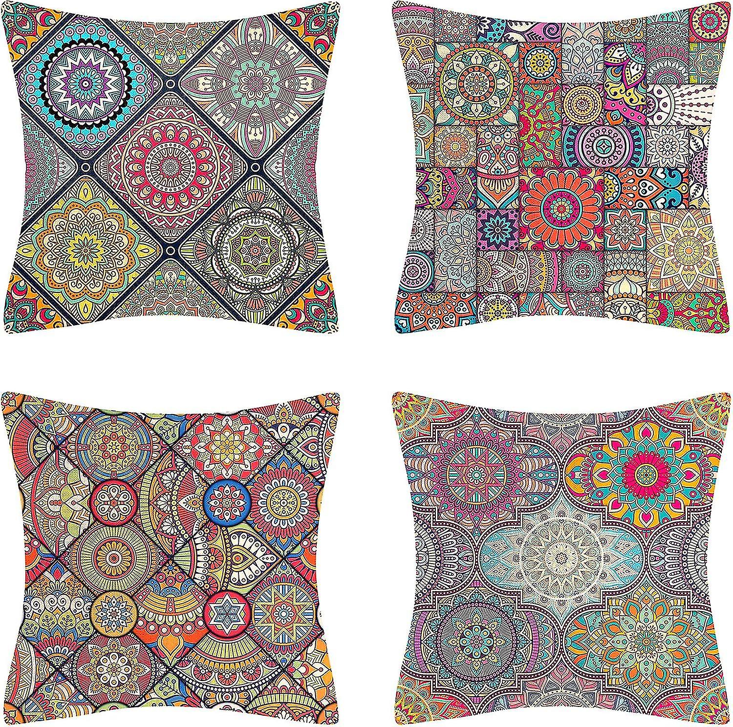 4 Pillowcase, Inserted Not included: 4 mandala cushion covers in 45x45cm (18 x 18inch), cushions and inserted pillow not included. Linen Cushion Covers: Made of natural and durable cotton and linen, comfortable, healthy, environmentally friendly, breathable, relatively thick and soft. It also has the excellent capabilities of anti-wrinkle, water absorption, abrasion resistance, corrosion resistance, and almost no pilling.Mandala Pattern Sofa Cushions: Adopt a bohemian decoration with these mandala cushion covers. Having several types of 2 colors, you will have the choice for the one that best matches the dominant colors of your decoration. You will then have a beautiful universe that revolves around the bohemian trend. Single Side Printed ONLY Hidden Zipper: The hidden zipper makes it easy to put on and take off decorative pillows and ensures an optimal fit on the decorative pillow.Decorative Pillow Covers: Soft as can be, cushions are timeless and timeless accessories that will allow you to add a final touch to the decor of your bedroom as well as that of the living room. Cleverly enhancing armchairs, benches, home, sofas, car, chairs and beds, they are available endlessly to allow you to comfortably dress your interior according to your desires
