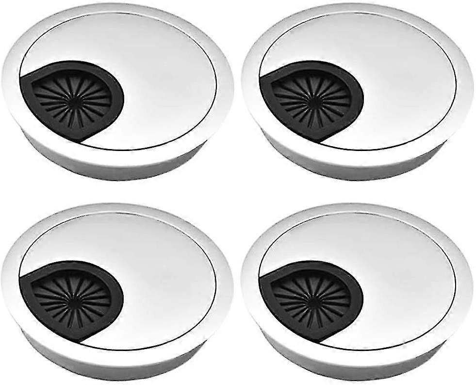 4pcs Round Plastic Recessed Cables, 60mm Desk Cable Organizer Silver Brushed Metal Cable