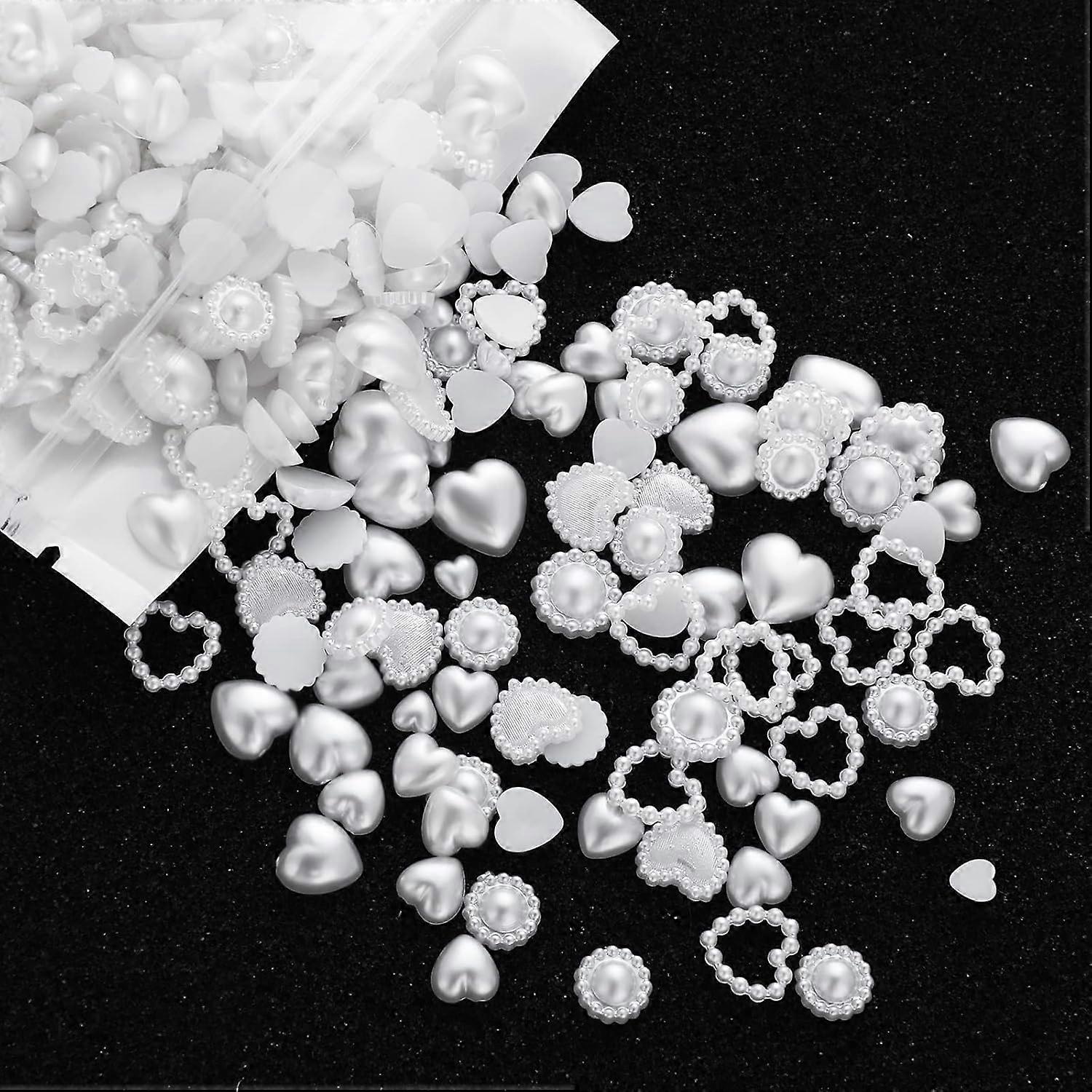 460pcs White Nail Art Decorations Pearls Heart 3D Nail Art Decorations