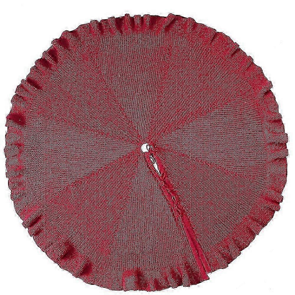 48-Inch Christmas Tree Skirt, Burgundy Knitted Rustic Xmas Holiday Decoration, Perfect for Indoor Outdoor Use