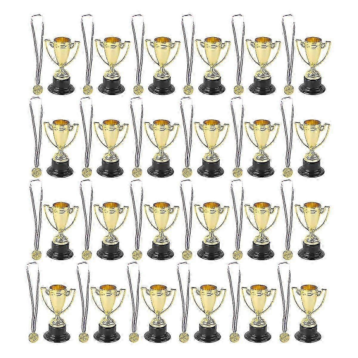 48 Pack Gold Plastic Trophy Cups & Medals Set for Kids Sports Awards, 24 Pcs Each