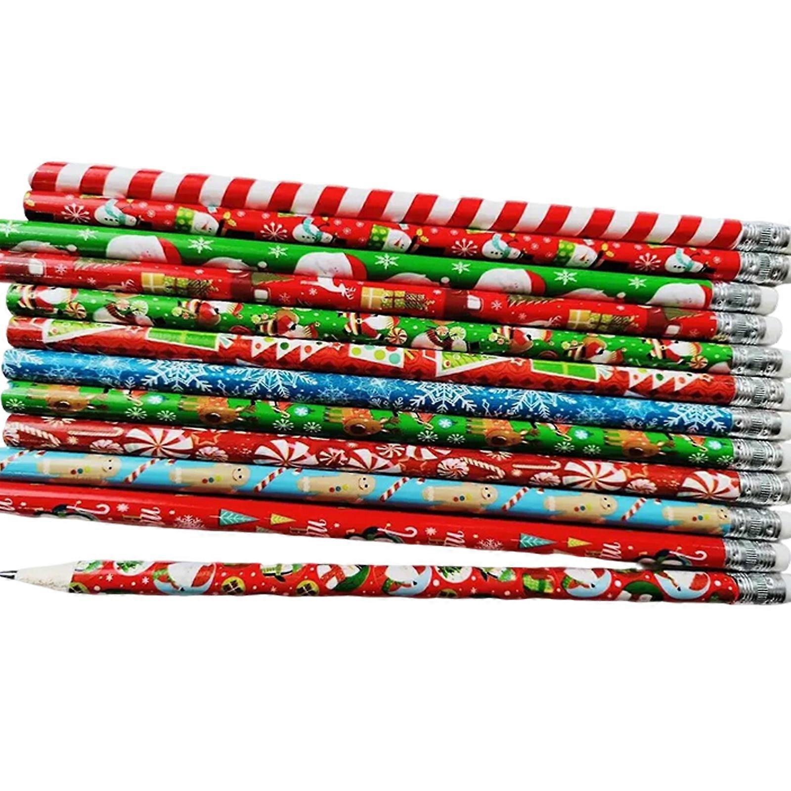 48Pieces Christmas Pencil Wood Pencils with Erasers Christmas Stocking Fillers Wood Drawing Pencils for Kid Student