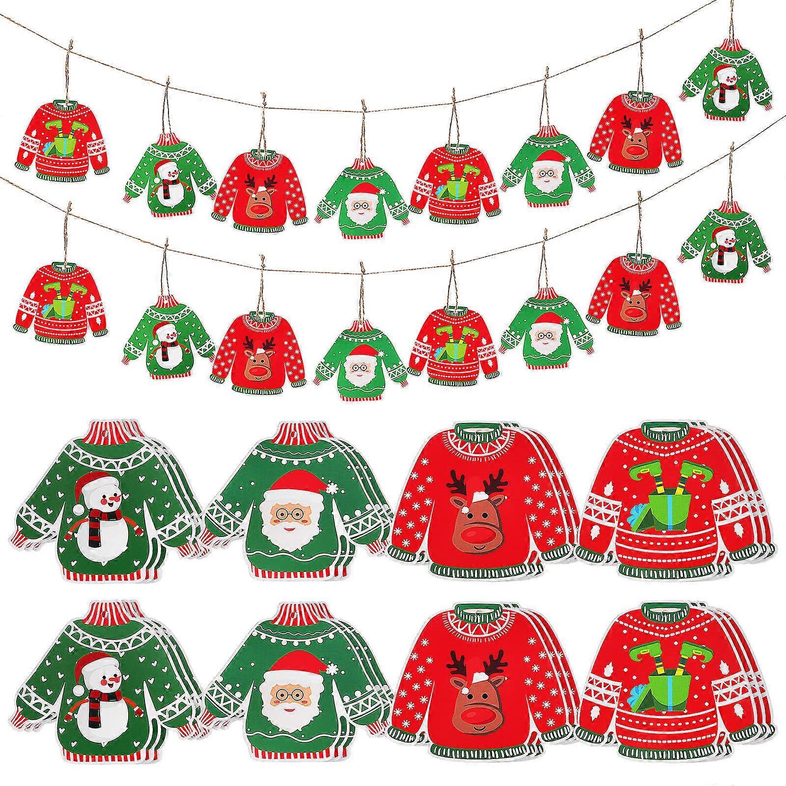 48pcs Christmas Ugly Sweater Ornaments - Hanging Paper Winter Ugly Sweater With Rope For Xmas Tree- Home Holiday Favors Party Decorations (4 Styles)