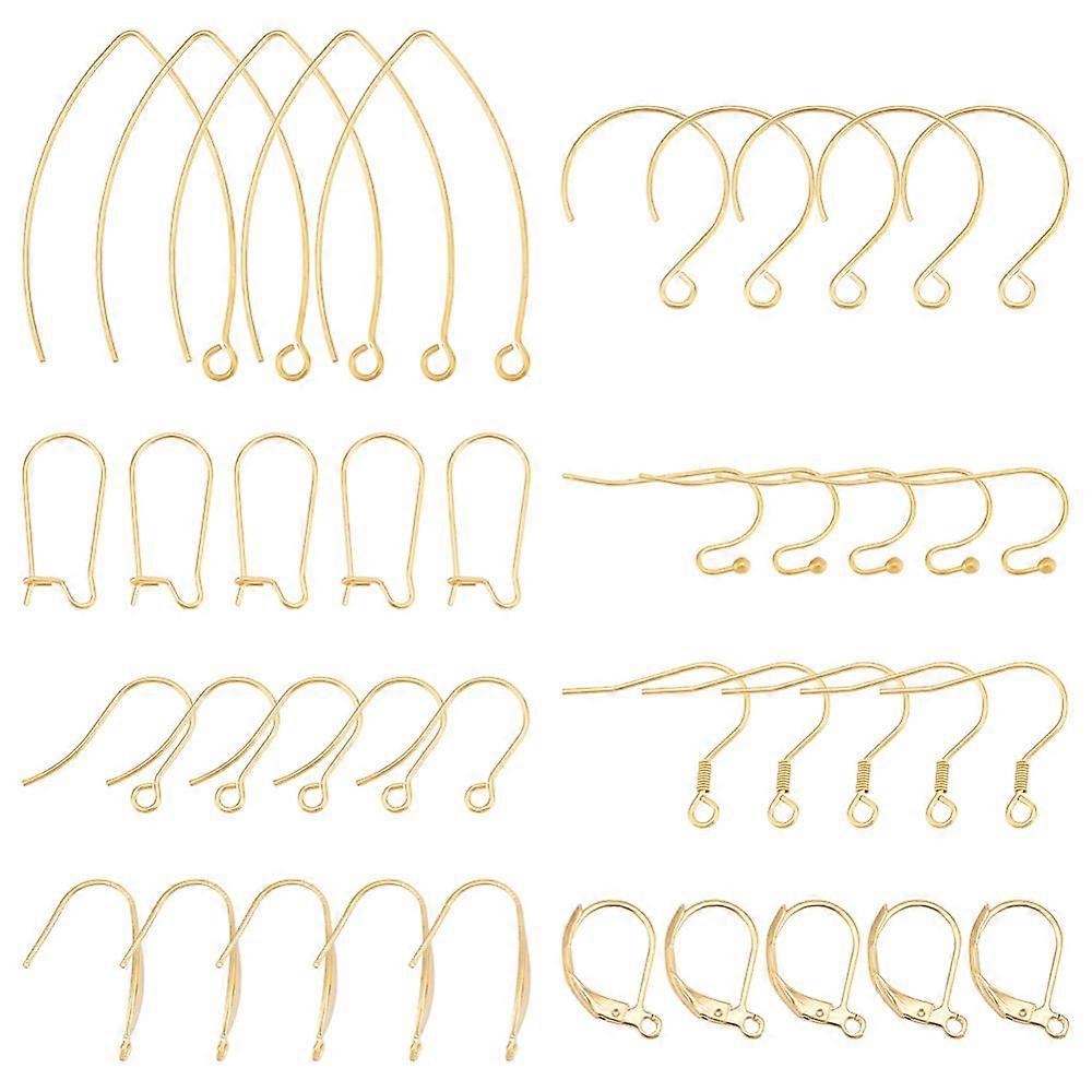 48Pcs 8 Style 304 Stainless Steel Earring Hooks Golden 6pcs/style