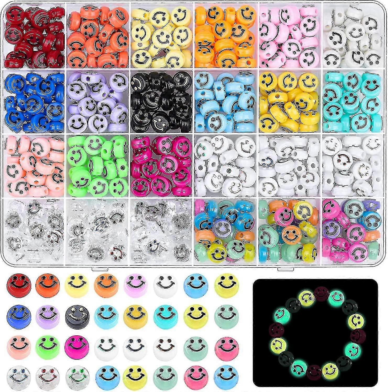 Package include You will get 480pcs colorful acrylic smiley face beads with a box (5.12inx7.48in), including 300pcs beads in 15 colors (20pcs per color), 60pcs white beads, 60pcs clear beads, and 60pcs luminous beads. Each bead is about 10mm in diameter, 6mm in thickness, suitable for craft making.Glowing BeadsThere are 60 pieces of luminous happy face beads in different colors that can glow in the dark. Put the luminous beads under the sun or light, the smiley beads of your handcrafts will glow at night, which adds more fun to your life.Durable MaterialMake of high-quality acrylic, Tuceyea smile face beads shows vibrant and bright color. Never worry about the beads fading even in a shower, seawater, soil, or sun exposure. Create your own unique and permanent crafts with your endless imagination.Kids Favorite Children are always interested in colorful things, especially sweet and exquisite beads. Making smiley beads crafts with your children not only improves children hands-on ability Creative Gift A range of sweet beads can be used for many jewelry-making crafts and Christmas gifts, such as bracelets, necklaces, earrings, keychains, cellphone hanging accessories, etc, to bring happiness to your family, friends, and colleagues