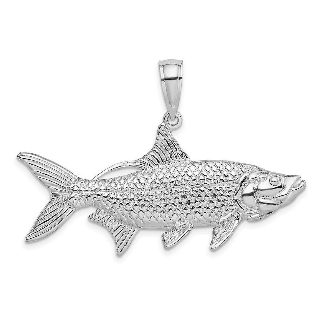 48.5mm 925 Sterling Silver Rhodium Plated Polished 3d Oxeye Tarpon Animal Sealife Fish Pendant Necklace-Pendant for Wome