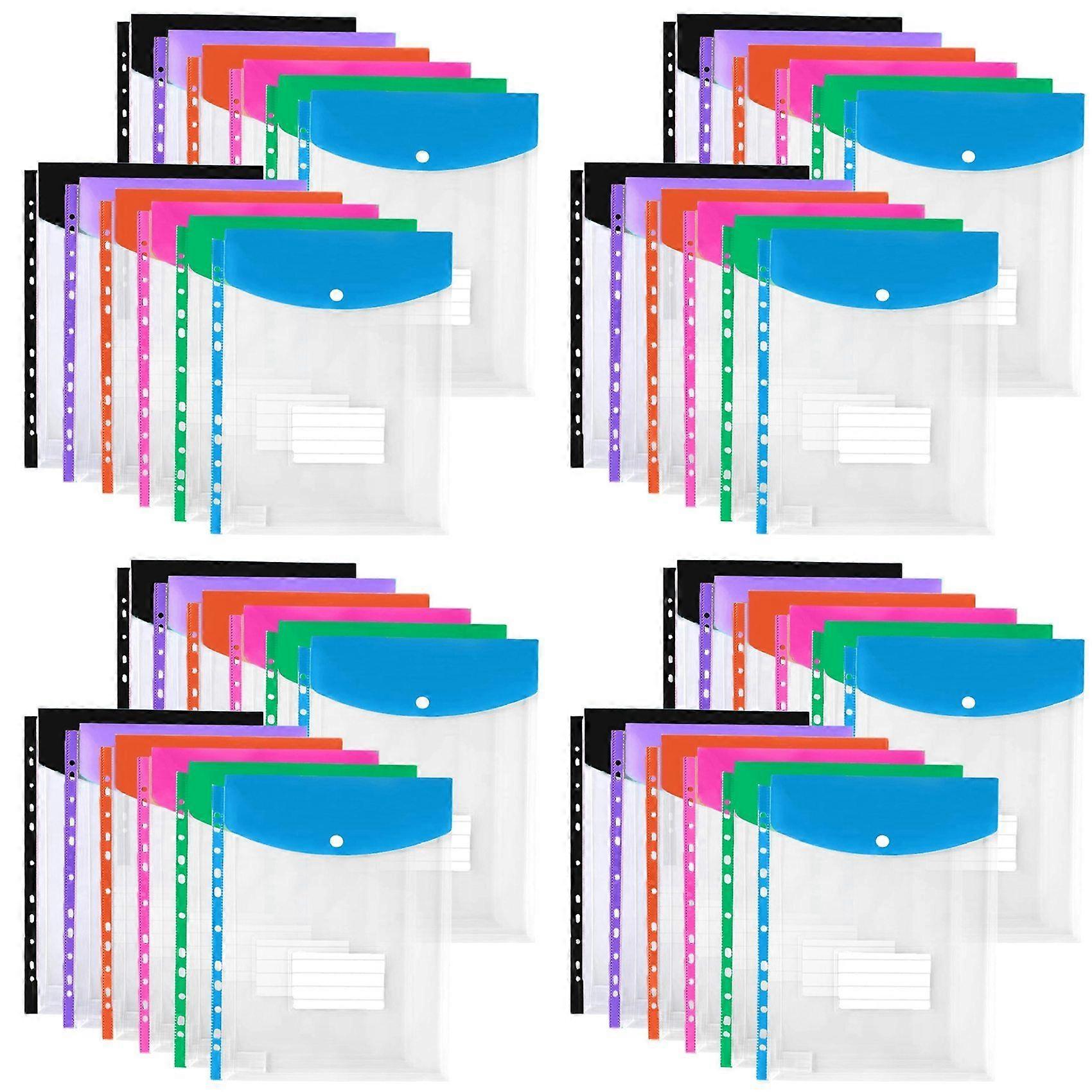 48Pack Plastic Envelopes, Binder Pockets for 3/4/11 Ring Binder,Expandable Document Organizer with Snap Button and Label