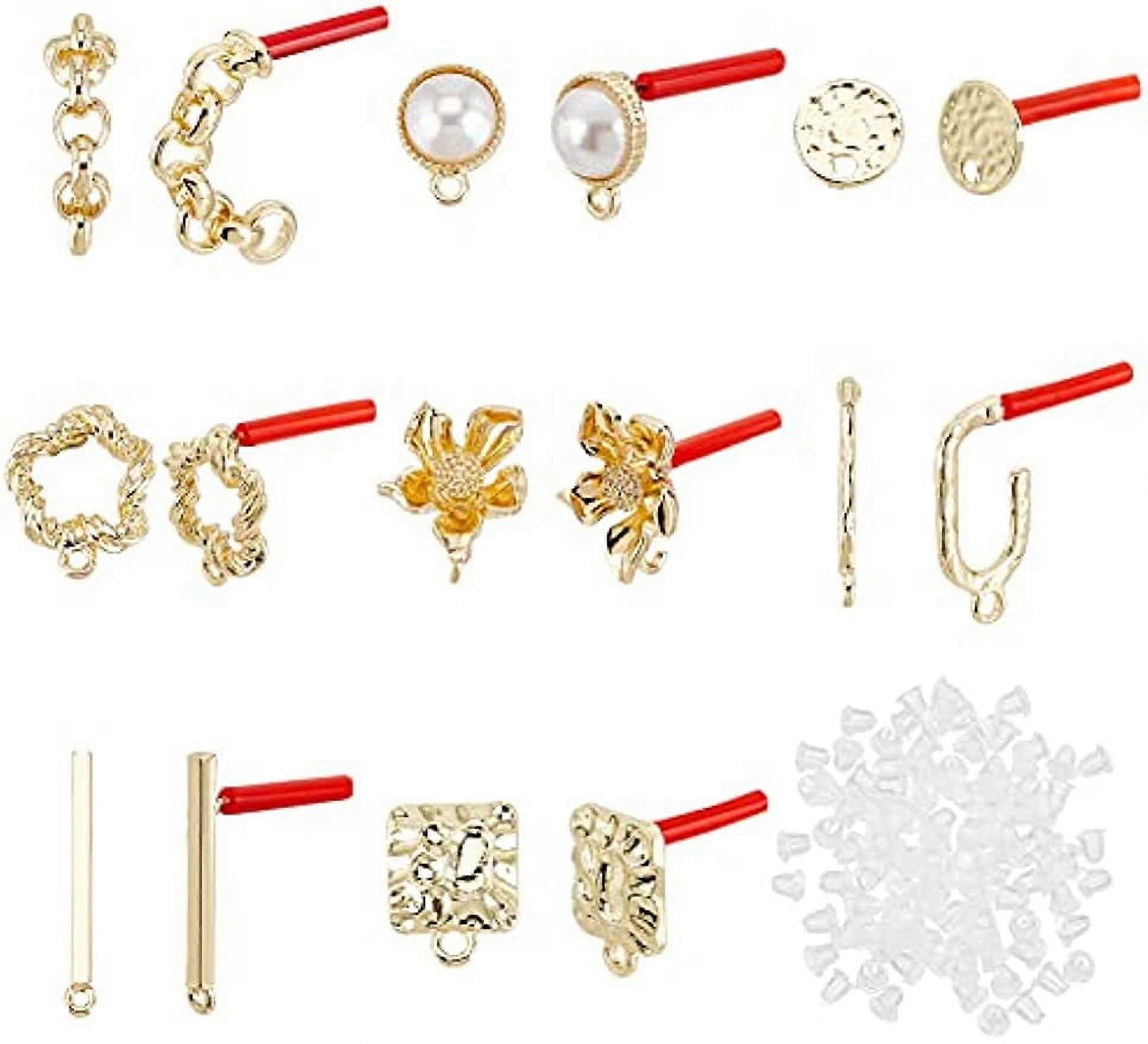 48pcs Stud Earring 8 Styles Pearl Earring Golden Post Ear Studs Flower Star Post Earrings Earring Pins
