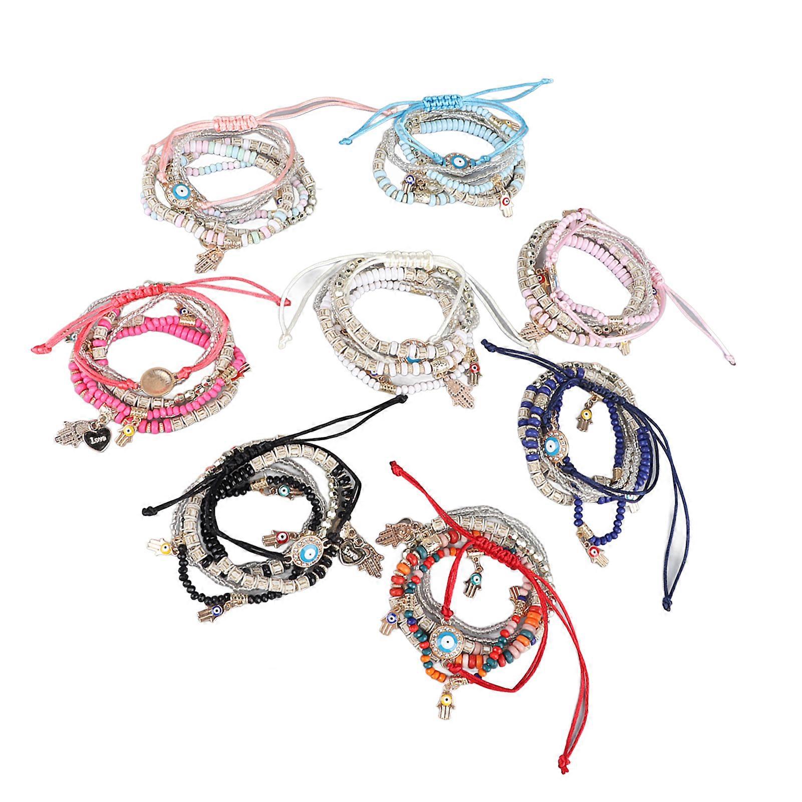 48pcs Blue Eye Bead Bracelet Good Luck Amulet Elasticity Stackable Bracelets for Men Women Daily Wear