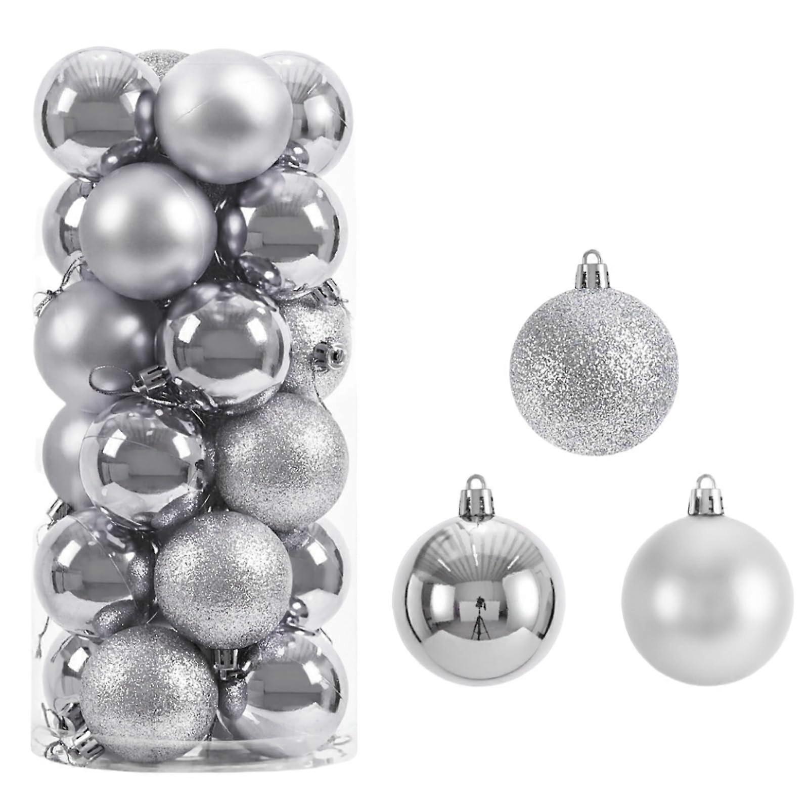 4cm Christmas Balls 24-Piece Plastic Tree Ornaments Shatterproof 3 Styles Silver Christmas Tree Decor