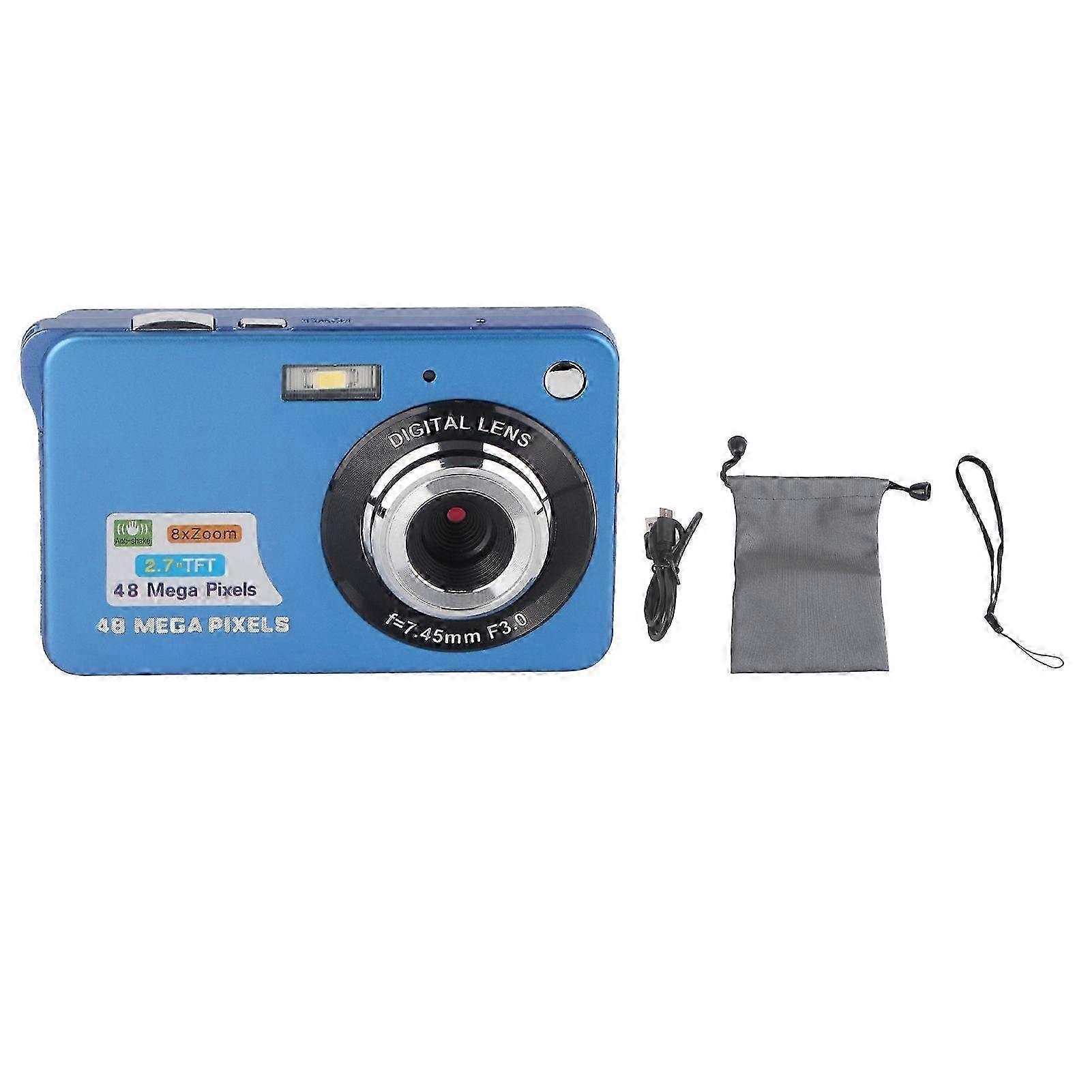 4K Digital Camera 48MP 2.7in LCD Display 8x Zoom Anti Shake Vlogging Camera for Photography Continuous Shooting Blue