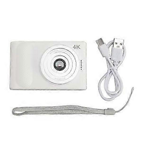 4K Digital Camera 48MP HD 16X Digital Zoom Autofocus Portable Pocket-Micro SLR Camera with 2.4 inch TFT Screen for Travel Photography Vlogging White